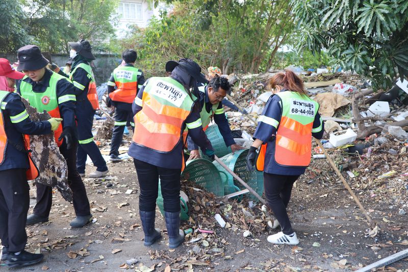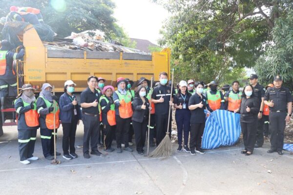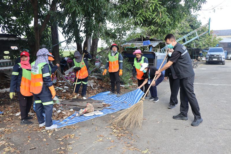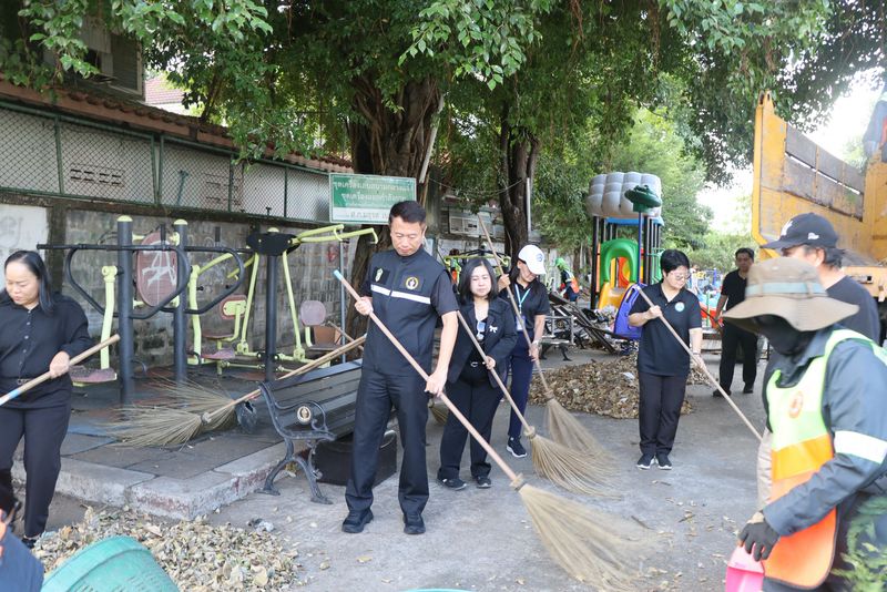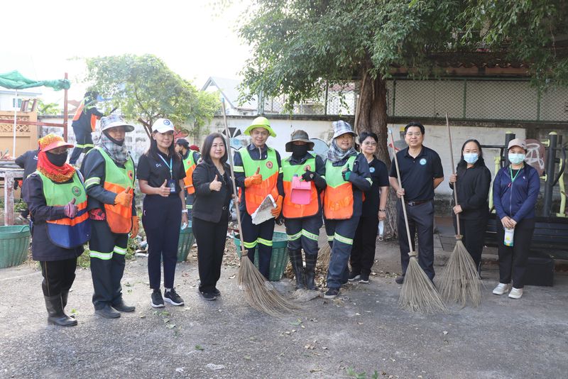 นายพงศธร ชั้นไพศาลศิลป์ ผู้อำนวยการเขตสะพานสูง นางพิชญ์สินี ปานเกตุ ผู้ช่วยผู้อำนวยการเขตสะพานสูง พร้อมคณะผู้บริหารเขต และเจ้าหน้าที่ฝ่ายรักษาความสะอาดฯ ลงพื้นที่ร่วมพัฒนาพื้นที่ปรับปรุงภูมิทัศน์ บริเวณลานกีฬาหมู่บ้านศรีประจักษ์ ซอยรามคำแหง 156 โดยดำเนินกิจกรรมจัดเก็บขยะ เศษไม้ใบกิ่งไม้โดยรอบ เพื่อความสะอาดและเป็นระเบียบเรียบร้อยของพื้นที่