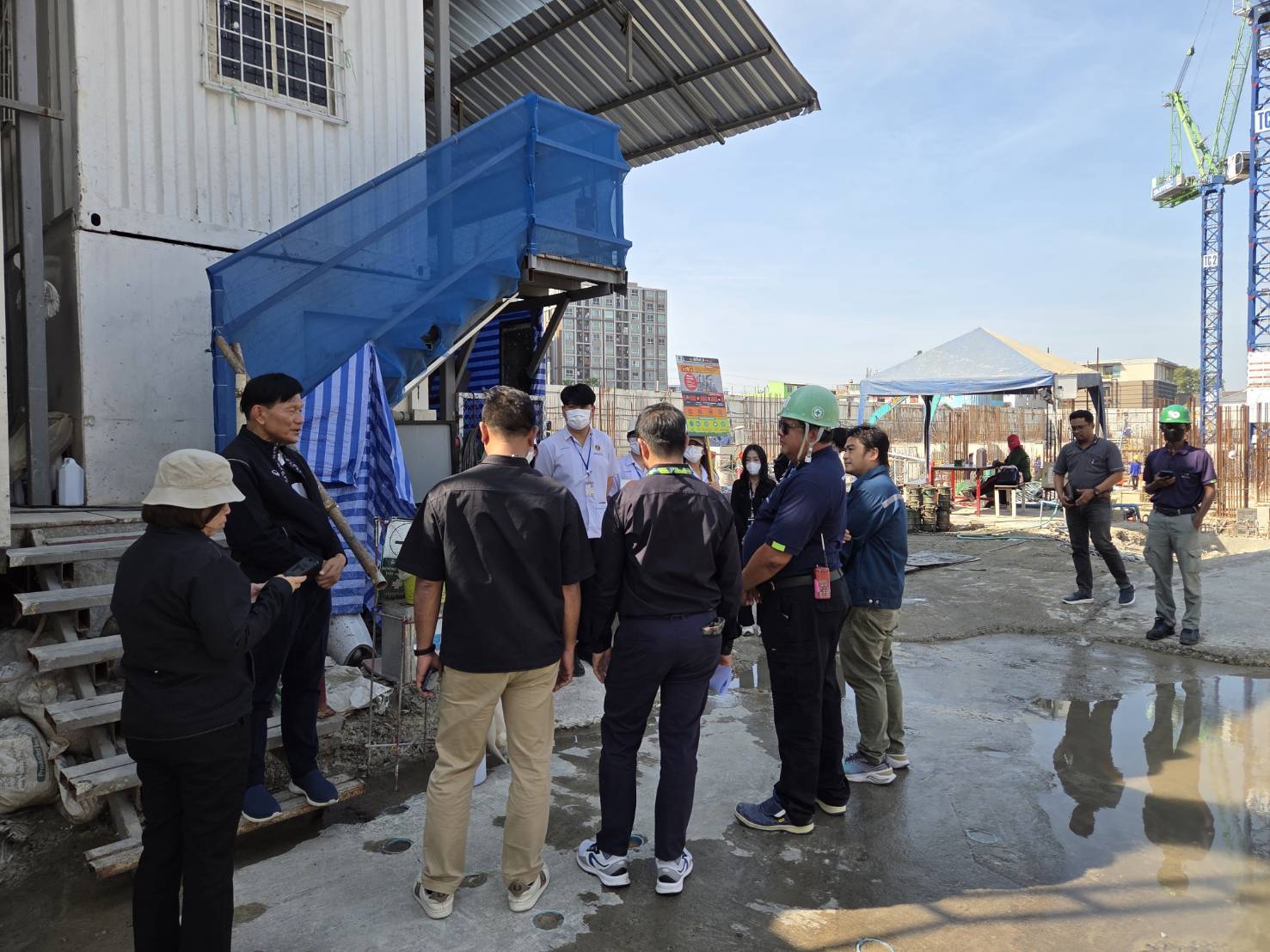 ติดตามมาตรการป้องกันและแก้ไขปัญหาฝุ่น PM2.5 โครงการก่อสร้างโรงพยาบาลปิยะเวท 2 ระยะที่ 1 ซอยวังหลัง 12 ถนนวังหลัง ซึ่งเป็นการก่อสร้างอาคารโรงพยาบาลความสูง 10 ชั้น และความสูง 12 ชั้น ชั้นใต้ดิน 1 ชั้น จำนวน 2 อาคาร ผู้ประกอบการจะต้องปฏิบัติตามวิธีและเงื่อนไขแนบท้ายใบอนุญาตในการก่อสร้างตามกฎกระทรวงฉบับที่ 4 (พ.ศ. 2526) และแก้ไขเพิ่มเติมตามกฎกระทรวง ฉบับที่ 67 (พ.ศ. 2563) และมาตรการป้องกันและแก้ไขปัญหาผลกระทบสิ่งแวดล้อม ตามรายงานการประเมินผลกระทบสิ่งแวดล้อม (EIA) ซึ่งการลงพื้นที่ในครั้งนี้ เป็นการติดตามมาตรการป้องกันและแก้ไขปัญหาฝุ่น PM2.5 ครั้งที่ 3 ต่อเนื่องจากวันที่ 4 มีนาคม 2568 และวันที่ 22 กันยายน 2568 ที่ผ่านมาผู้ประกอบการได้ดำเนินการแก้ไขตามคำแนะนำแล้ว แต่ยังมีบางส่วนที่ยังไม่เรียบร้อย ซึ่งรองผู้ว่าราชการกรุงเทพมหานคร ได้เน้นย้ำให้ผู้ประกอบการเปิดเครื่องฉีดพ่นละอองน้ำในช่วงการปฏิบัติงานตลอดเวลา เปลี่ยนน้ำในบ่อล้างทำความสะอาดล้อรถบรรทุกและรถโม่ปูนด้านหน้าทางเข้า-ออกโครงการทุกวัน ตรวจสอบแนวรั้วให้มีความมั่นคงแข็งแรงและมีความสูงไม่น้อยกว่า 6 เมตร ติดตั้งเครื่องวัดค่าฝุ่น PM2.5 และจอแสดงผลด้านหน้าโครงการ ตรวจวัดค่าควันดำรถบรรทุกให้อยู่ในเกณฑ์มาตรฐานตามรอบที่กำหนดอย่างสม่ำเสมอ รวมถึงนำรถบรรทุกในโครงการลงทะเบียนบัญชีสีเขียว (Green List) ให้เรียบร้อย นอกจากนี้ เขตฯ ได้จัดทำแผนปฏิบัติการตรวจสอบและควบคุมสถานประกอบการที่ก่อให้เกิดปัญหาฝุ่น PM2.5 ในพื้นที่อย่างต่อเนื่อง ได้แก่ ประเภทสถานที่ก่อสร้าง 4 แห่ง ประเภทจุดถมดินท่าทราย 2 แห่ง ประเภทสถานประกอบการ 7 แห่ง พร้อมทั้งประชาสัมพันธ์ให้ความรู้เกี่ยวกับฝุ่น PM2.5 กำชับสถานประกอบการในพื้นที่ให้ปฏิบัติตามมาตรฐานที่กฎหมายกำหนดอย่างเคร่งครัด เพื่อลดมลพิษทางอากาศและลดผลกระทบต่อสิ่งแวดล้อมอย่างยั่งยืน