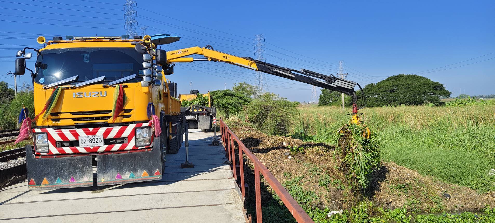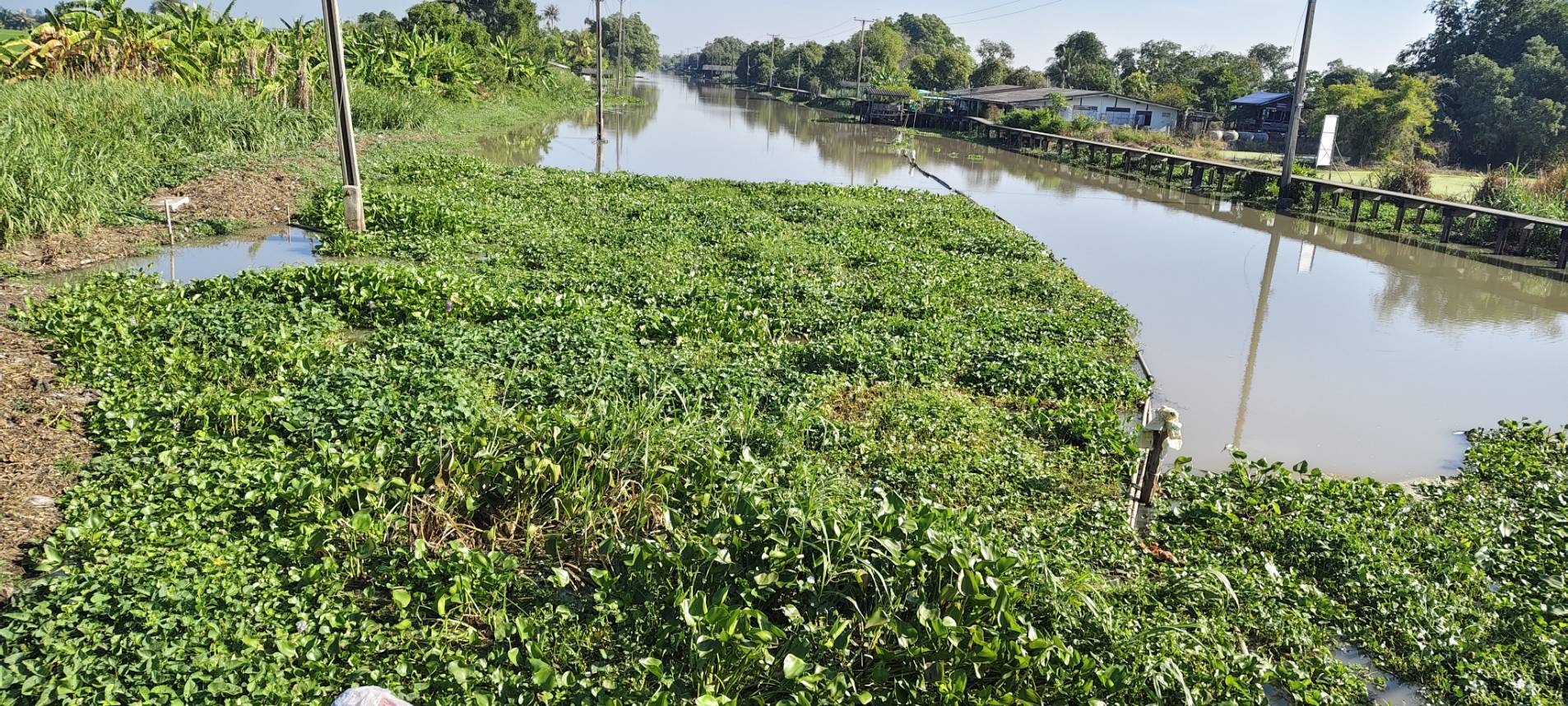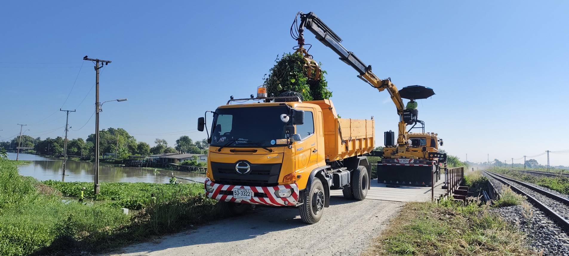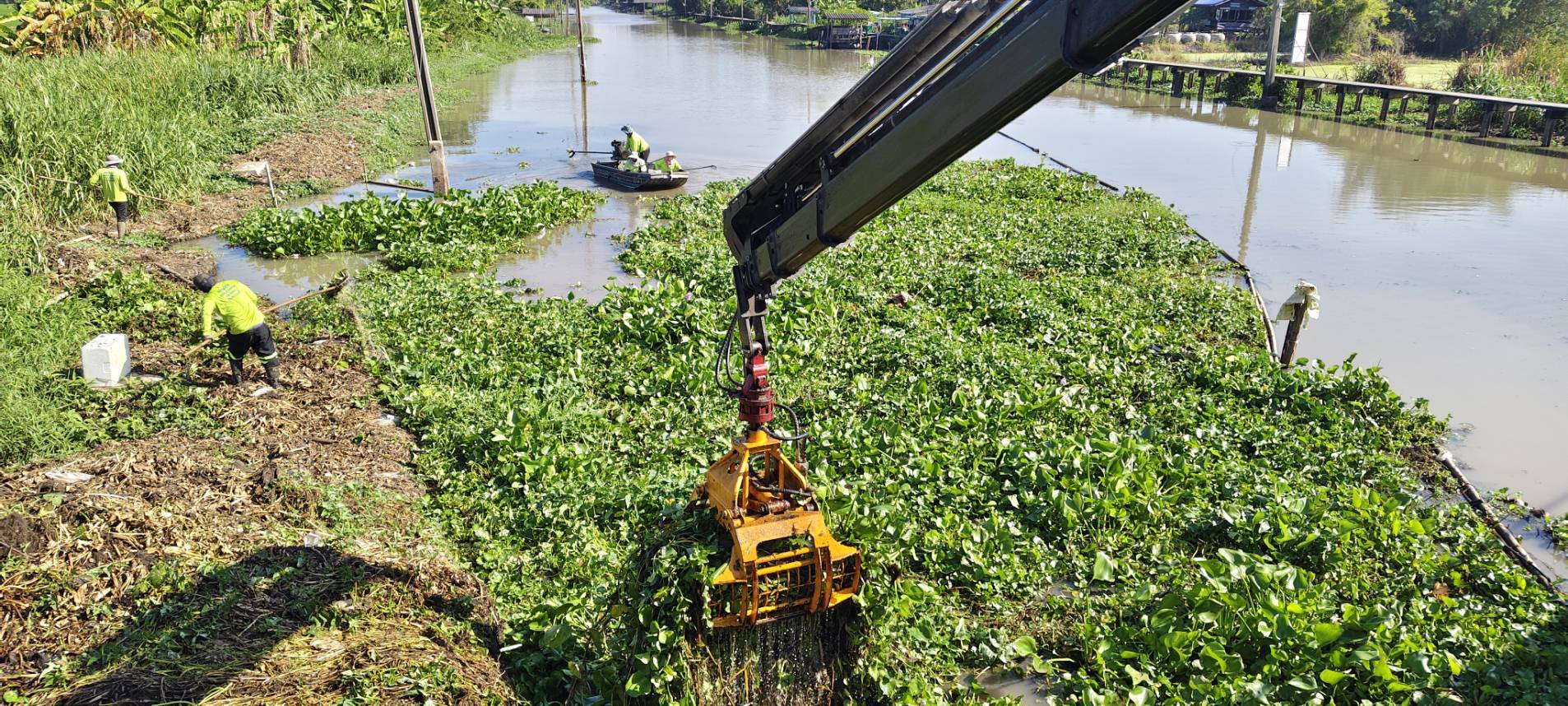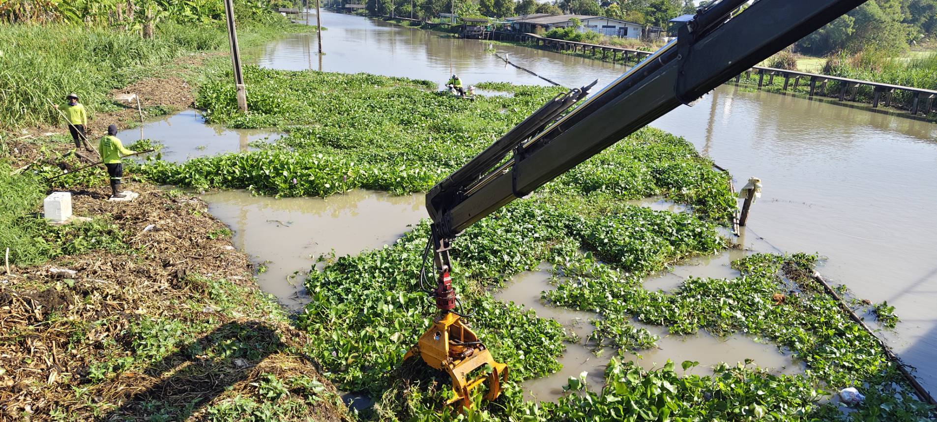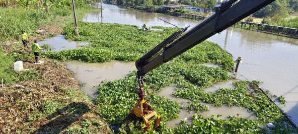 เจ้าหน้าที่ เก็บขยะวัชพืชคลองหลวงแพ่งบริเวณสะพานทางรถไฟสายตะวันออก