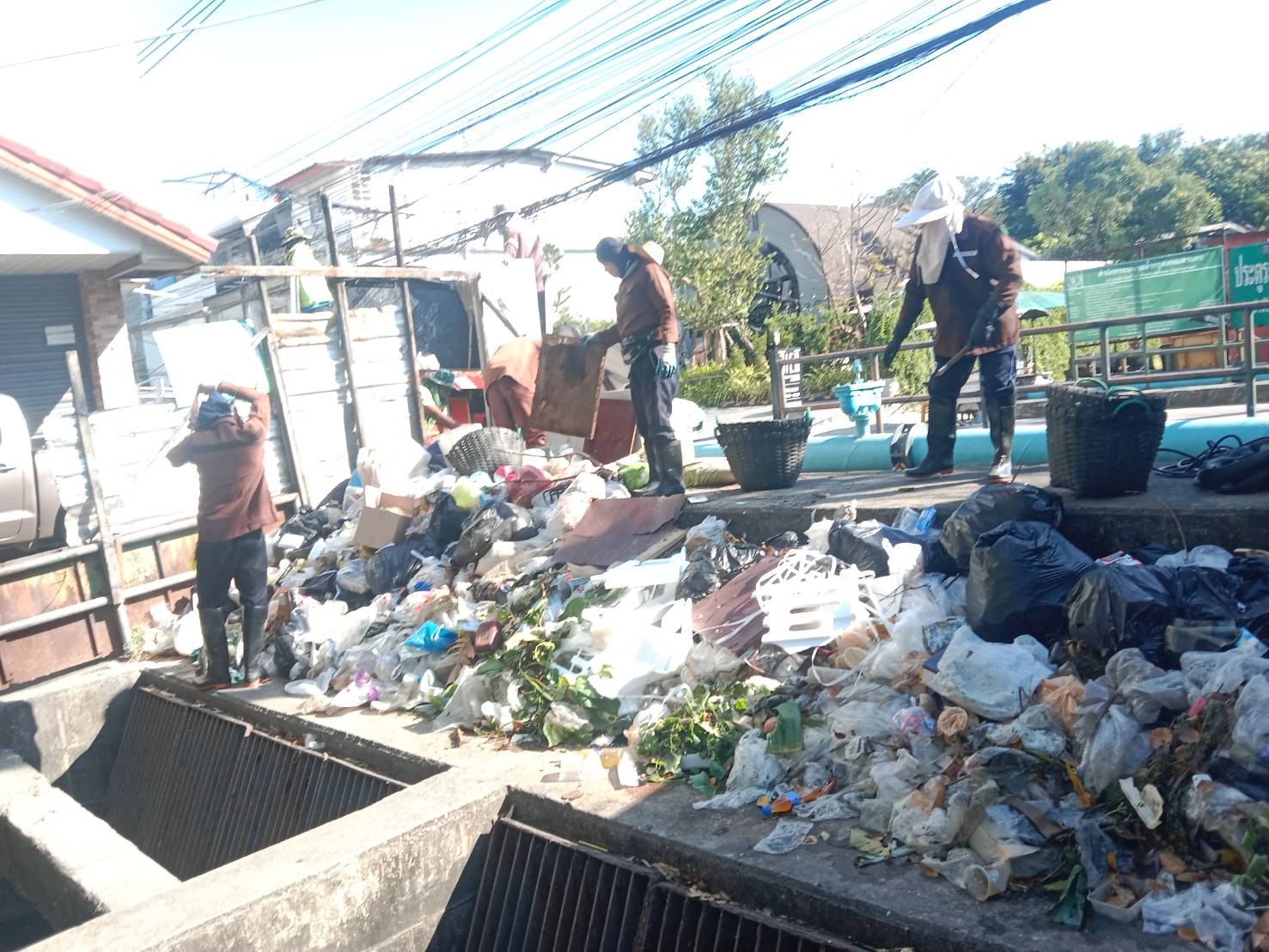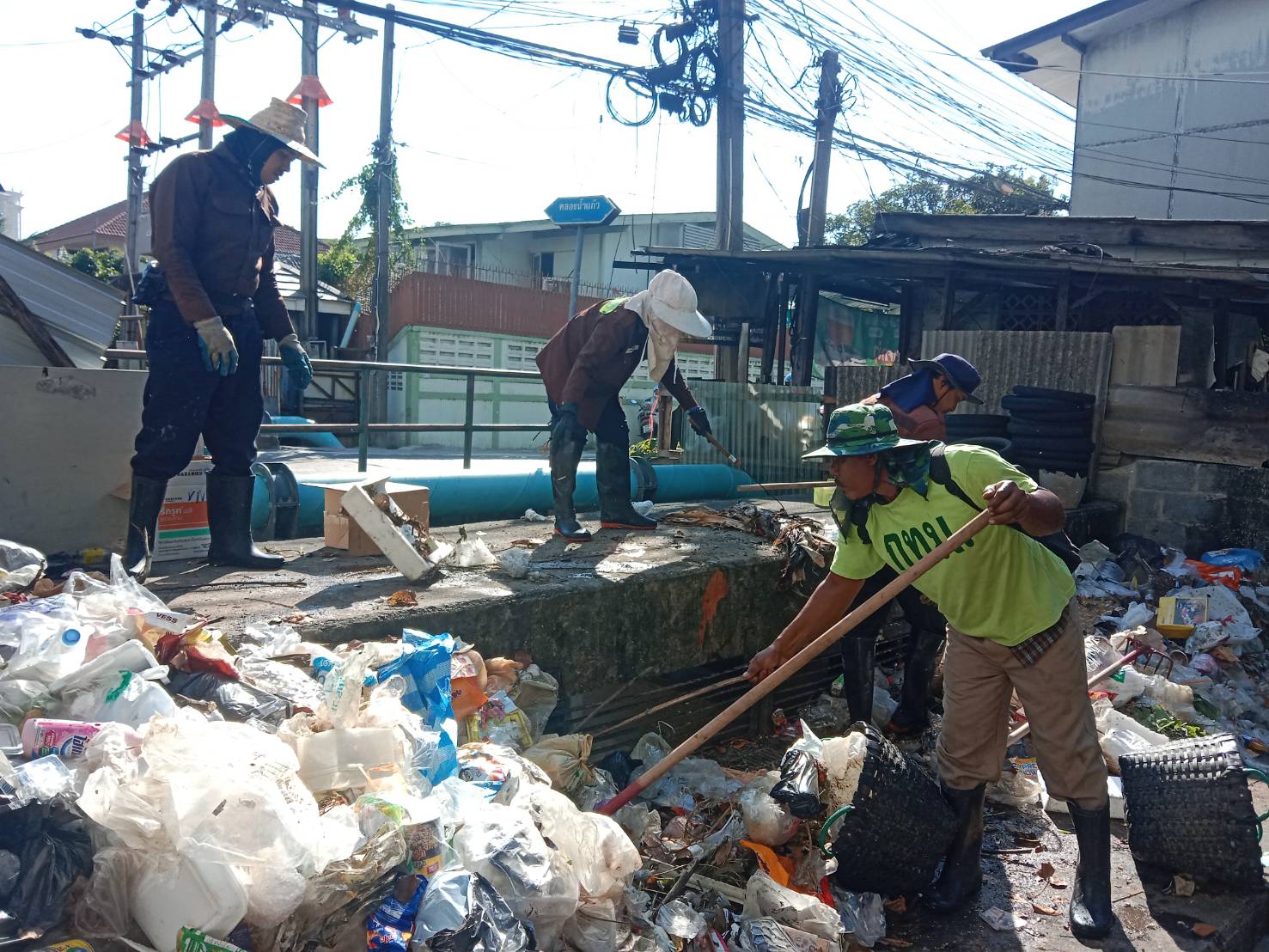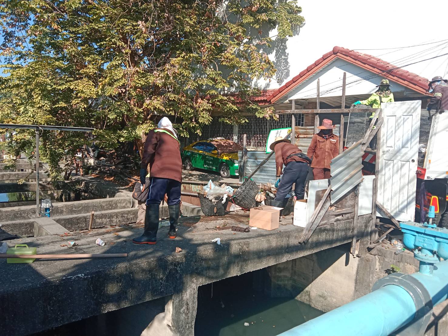 เจ้าหน้าที่ เก็บขยะและวัชพืช ปตร.คลองน้ำแก้ว พื้นที่เขตวังทองหลาง