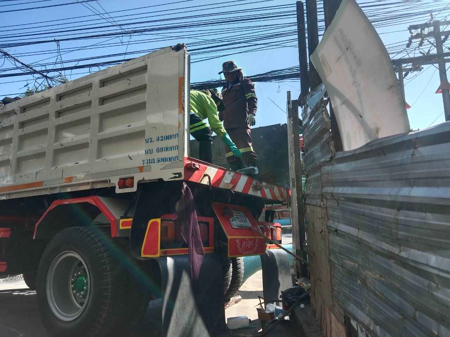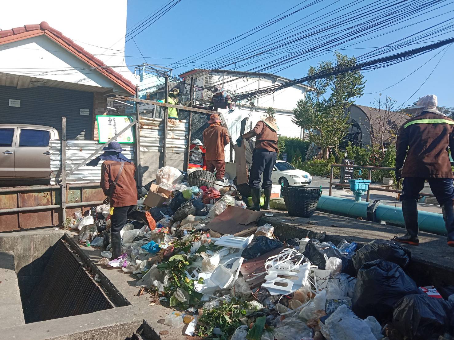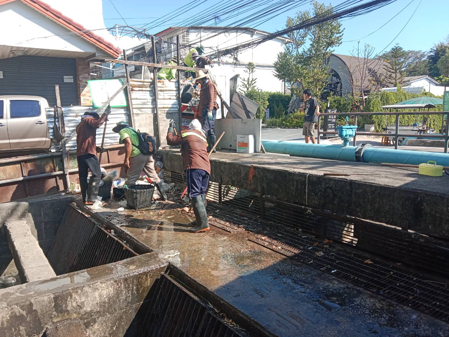 เจ้าหน้าที่ เก็บขยะและวัชพืช ปตร.คลองน้ำแก้ว พื้นที่เขตวังทองหลาง
