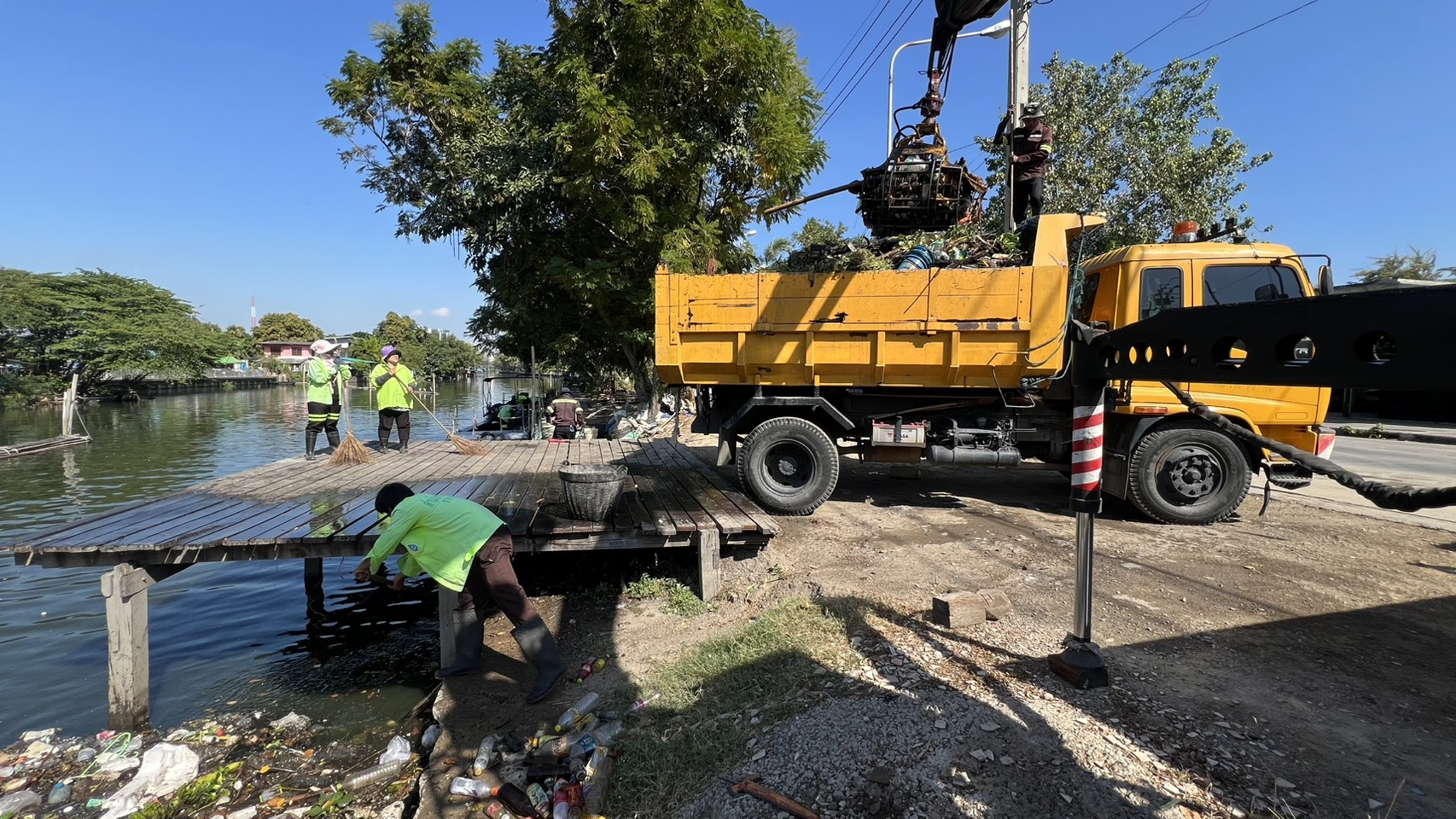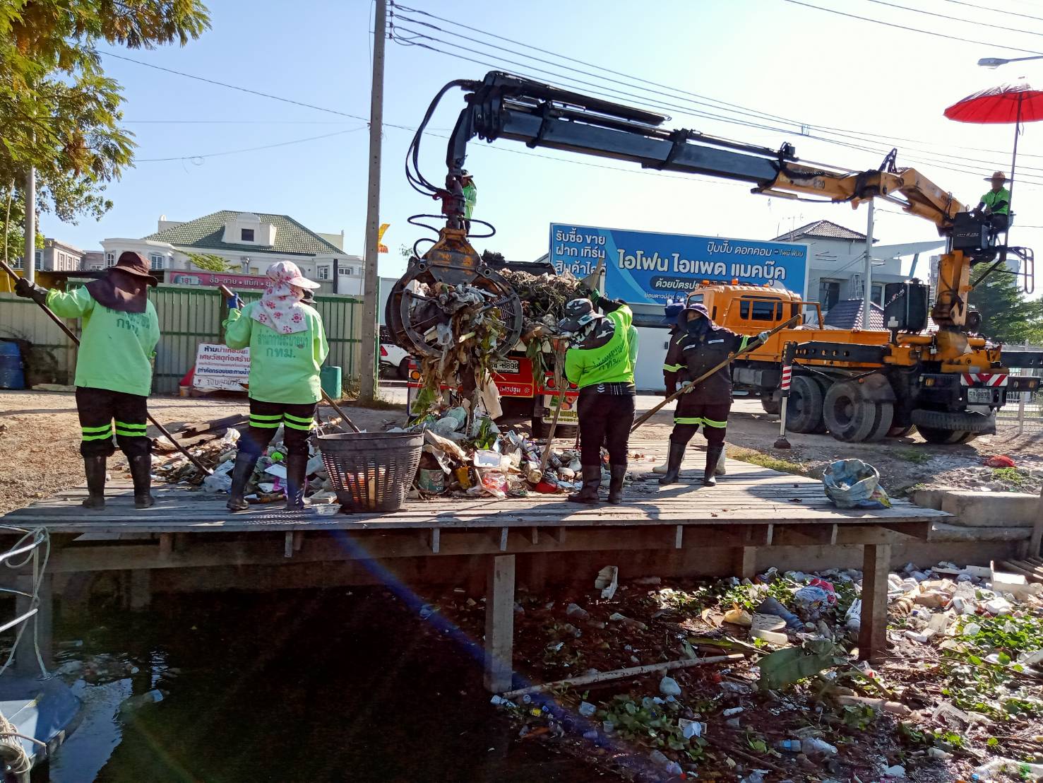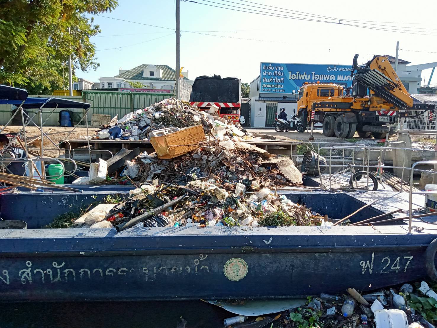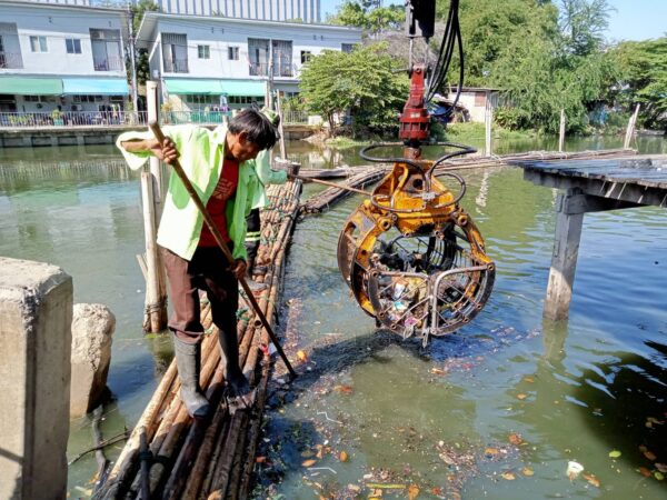 เจ้าหน้าที่ งับขยะและวัชพืช คลองลาดพร้าว ช่วงถนนผลาสินธ์ุ พื้นที่เขตลาดพร้าว