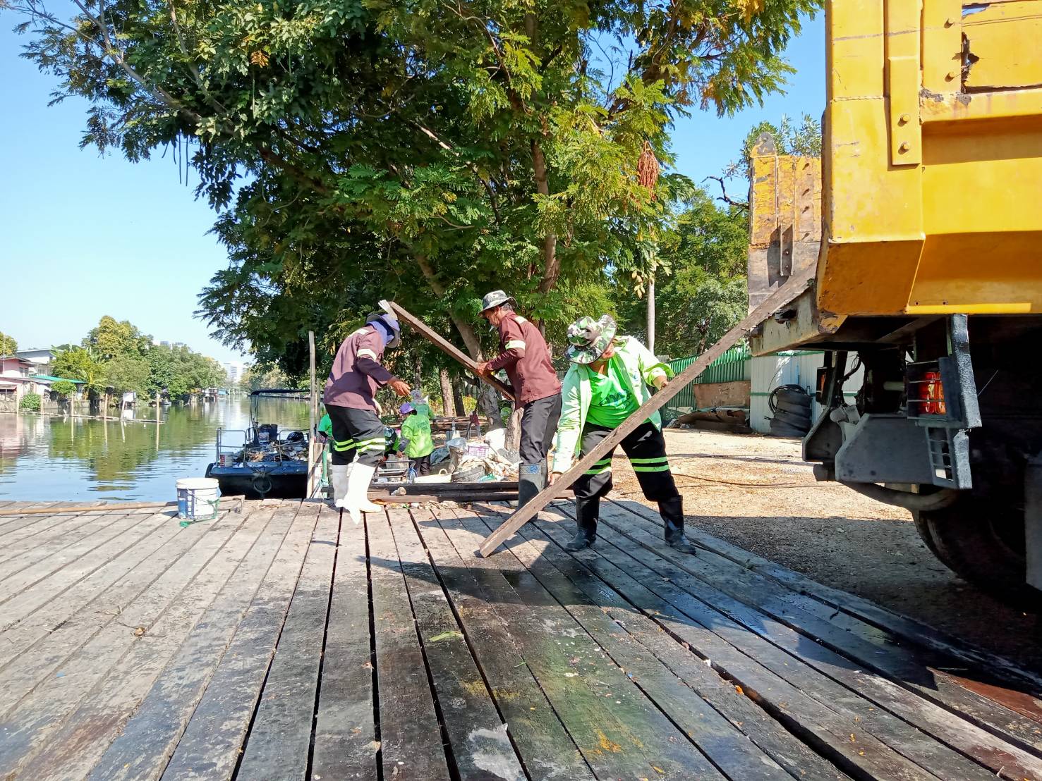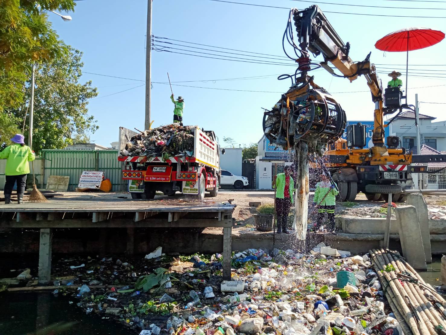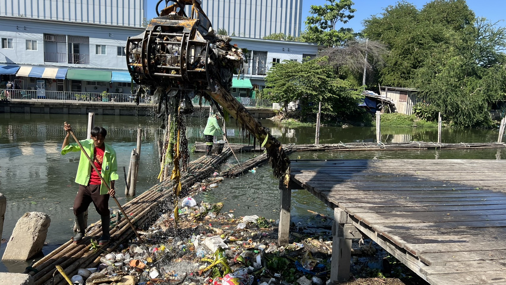 เจ้าหน้าที่ งับขยะและวัชพืช คลองลาดพร้าว ช่วงถนนผลาสินธ์ุ พื้นที่เขตลาดพร้าว