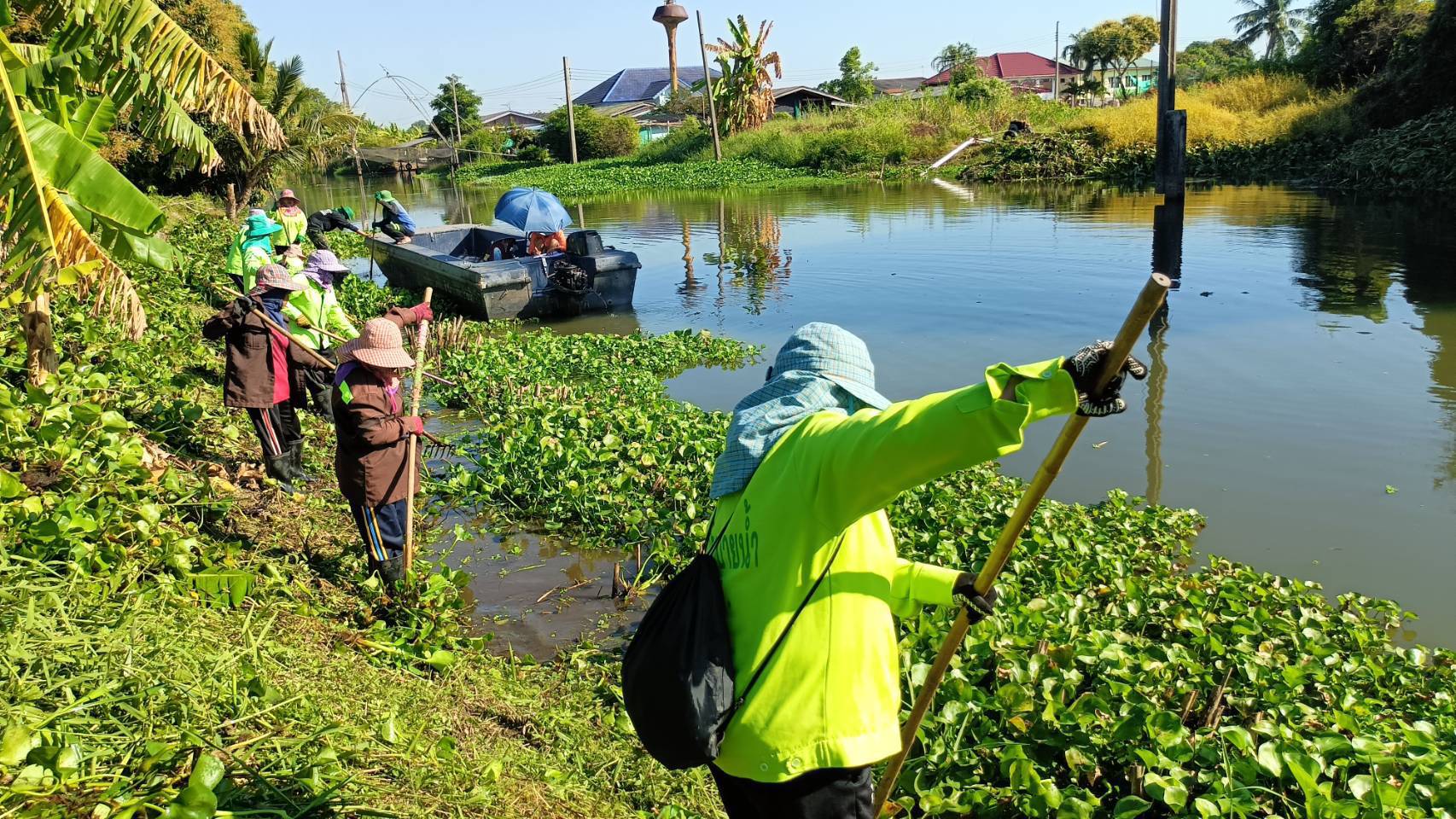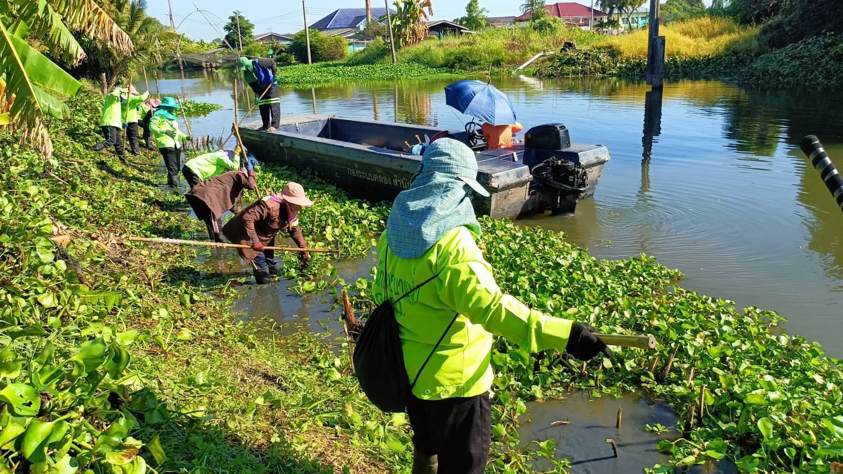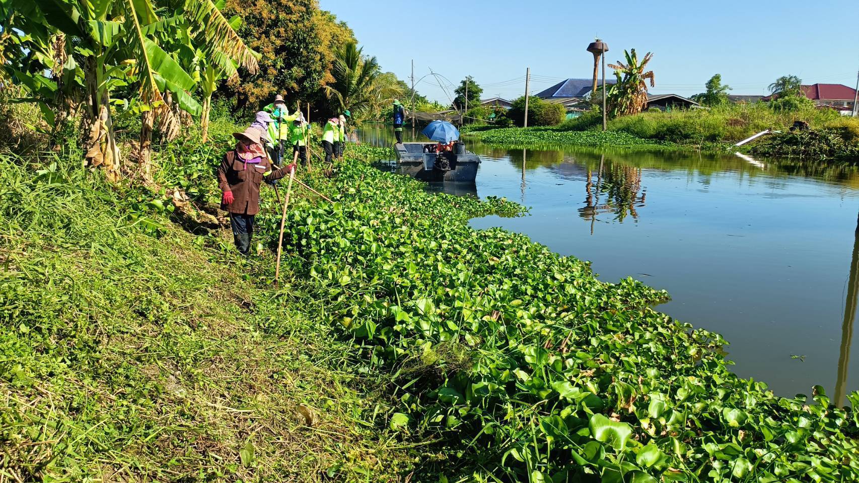 เจ้าหน้าที่ จัดเก็บวัชพืชคลองทับยาว พื้นที่เขตลาดกระบัง
