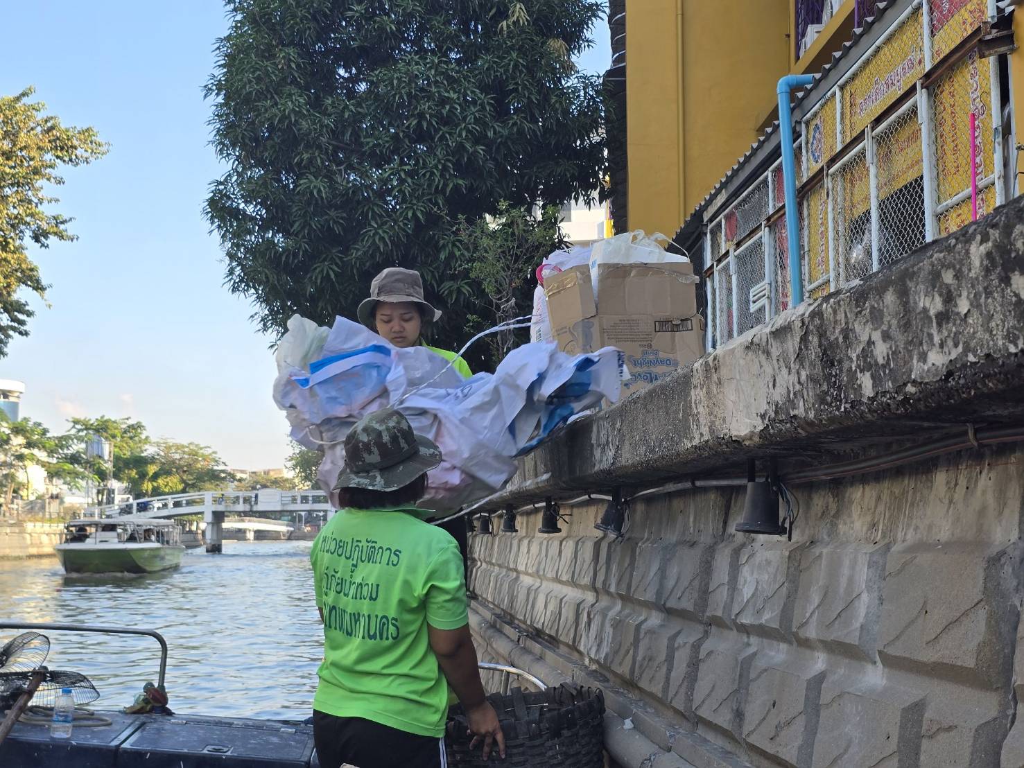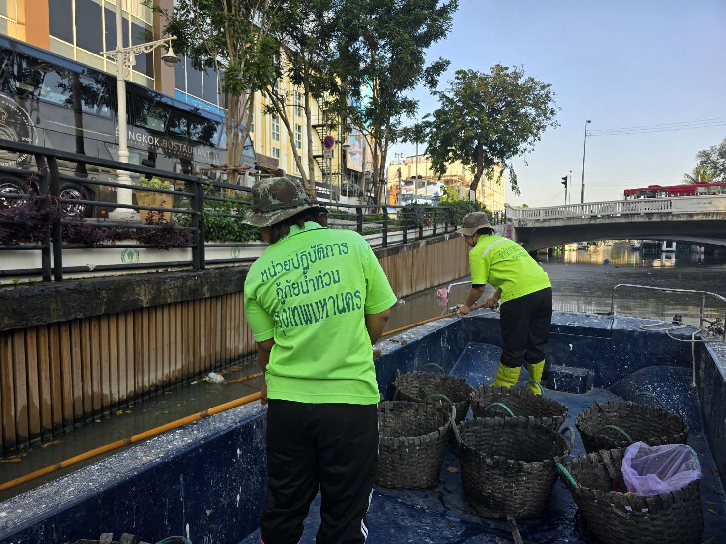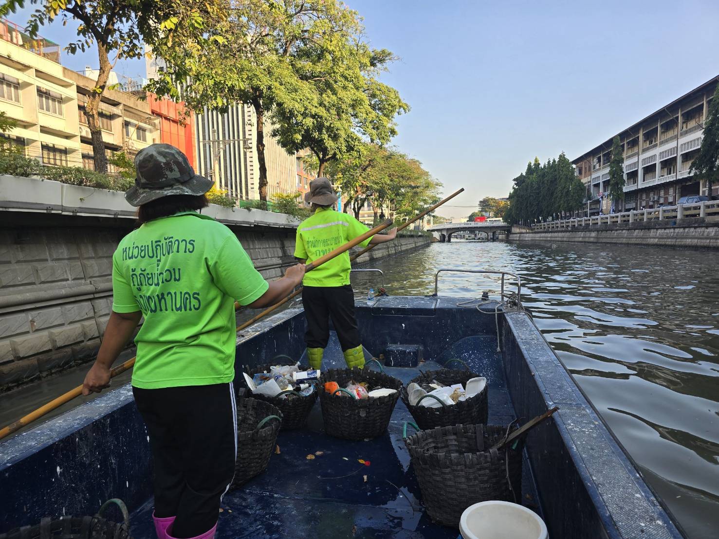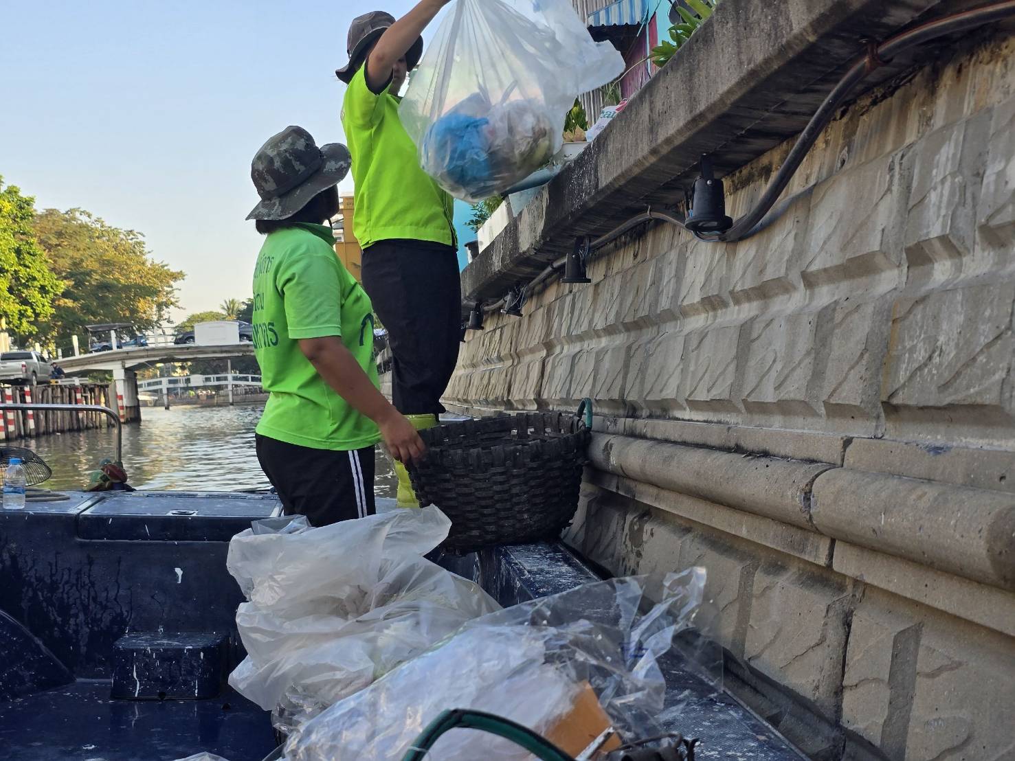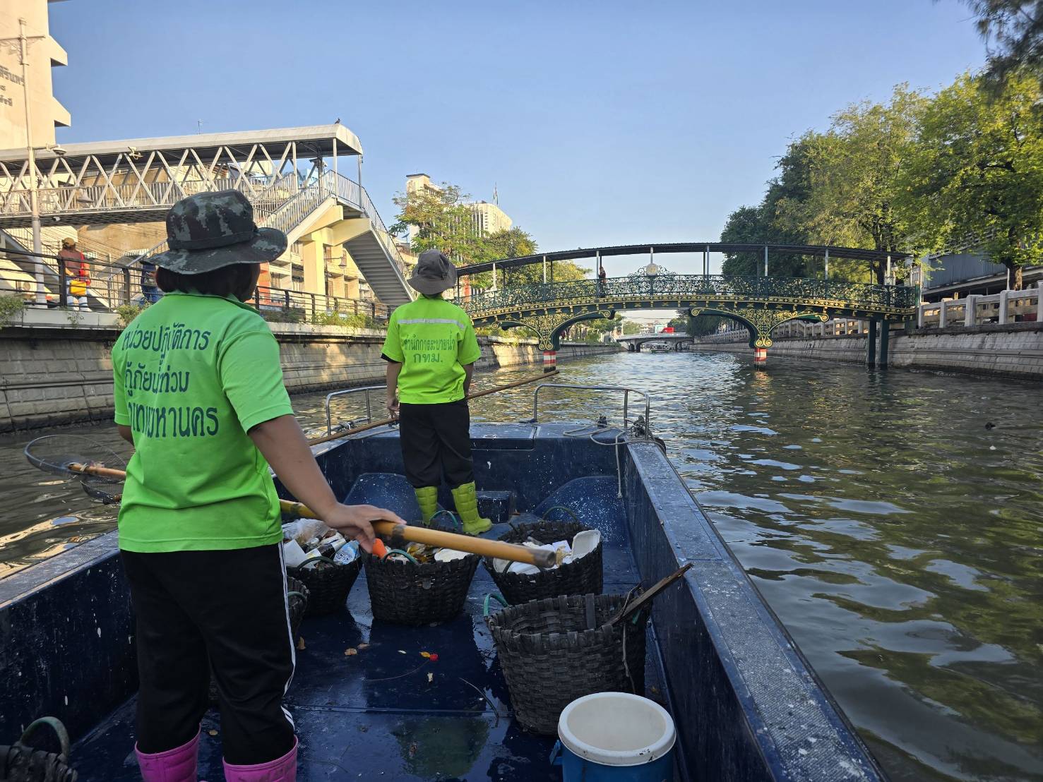 เจ้าหน้าที่ เก็บขยะช่วงสถานีสูบน้ำกรุงเกษมสะพานเจริญสวัสดิ์-สะพานนพวงศ์-สะพานกษัตริย์ศึกถึงสี่แยกมหานาค