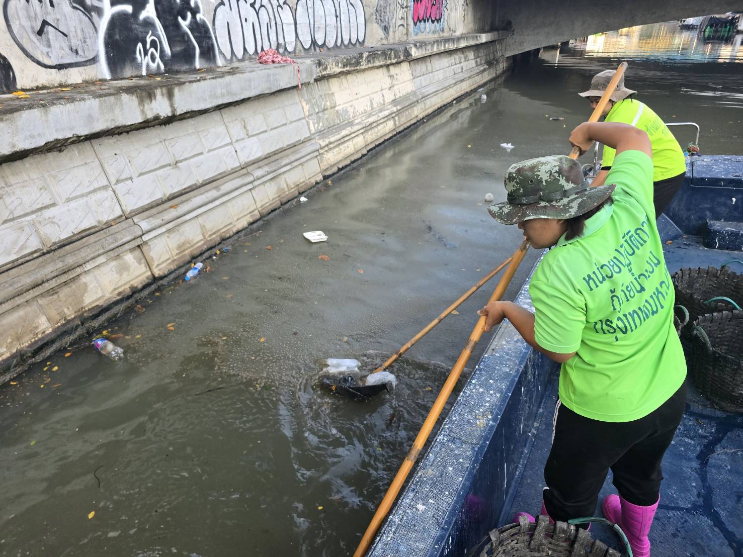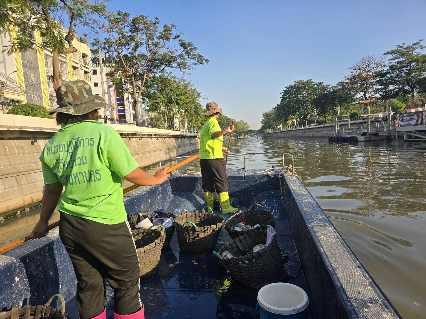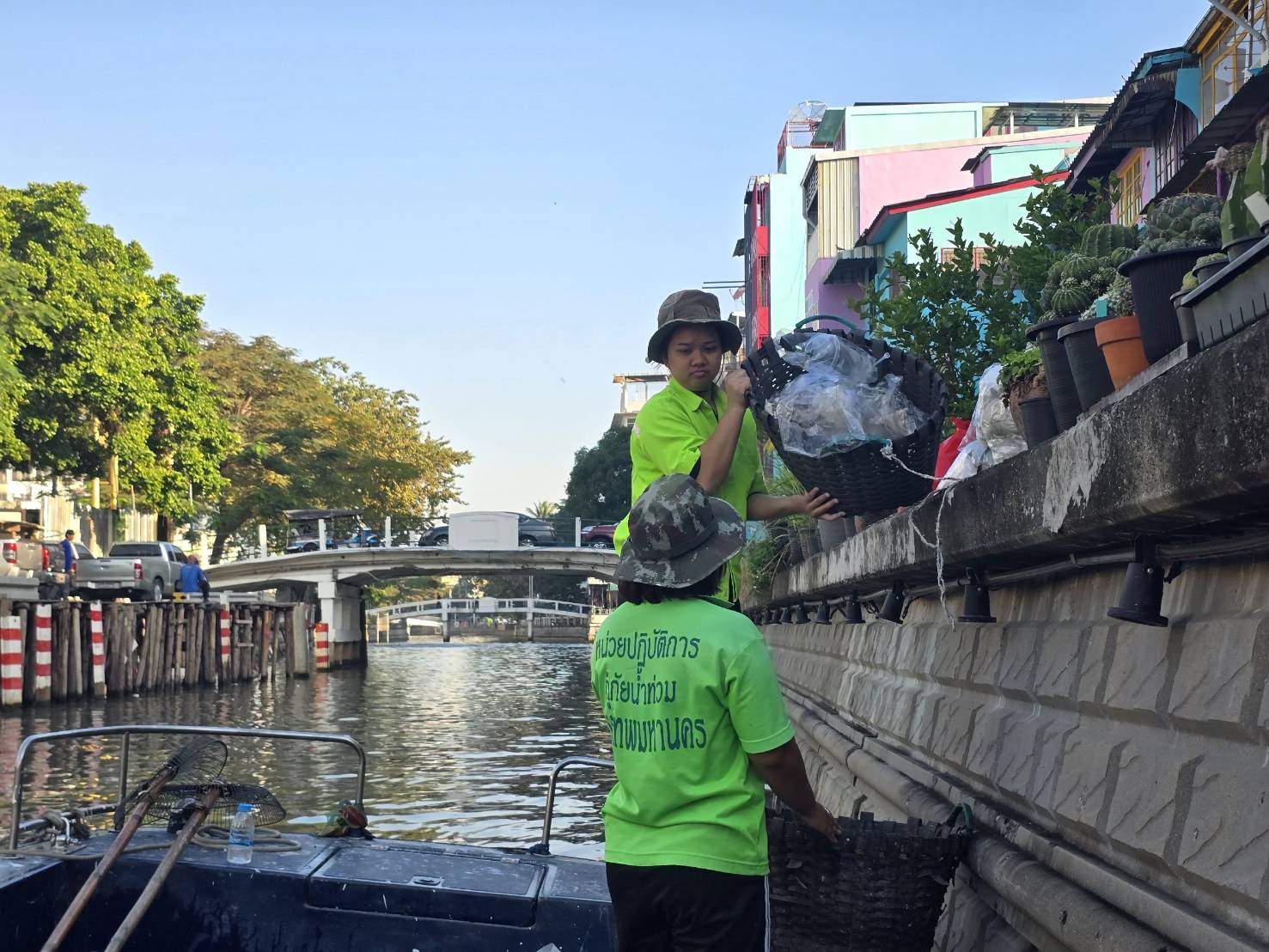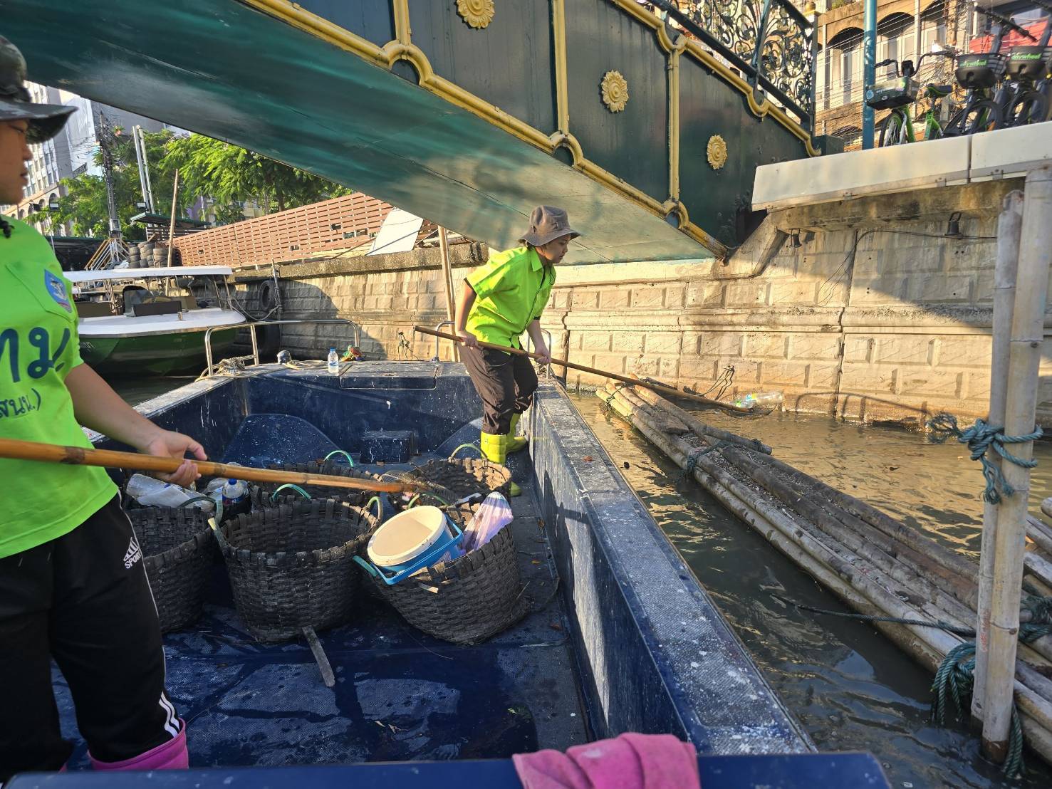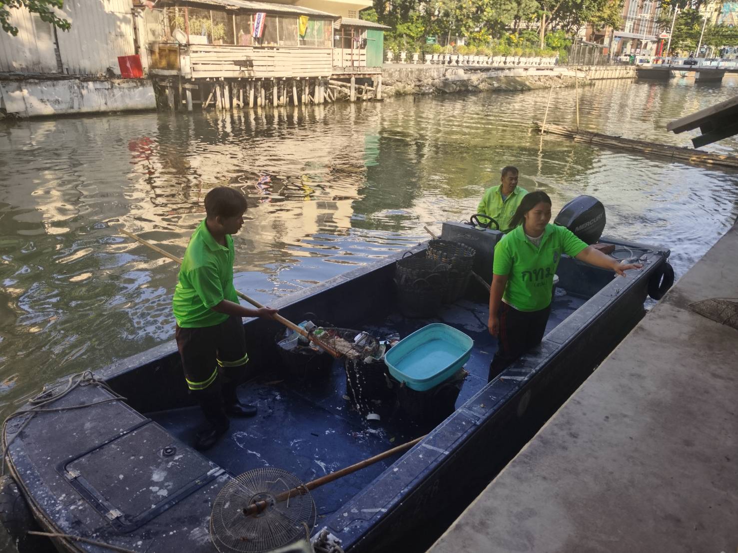เจ้าหน้าที่ เก็บขยะช่วงสถานีสูบน้ำกรุงเกษมสะพานเจริญสวัสดิ์-สะพานนพวงศ์-สะพานกษัตริย์ศึกถึงสี่แยกมหานาค