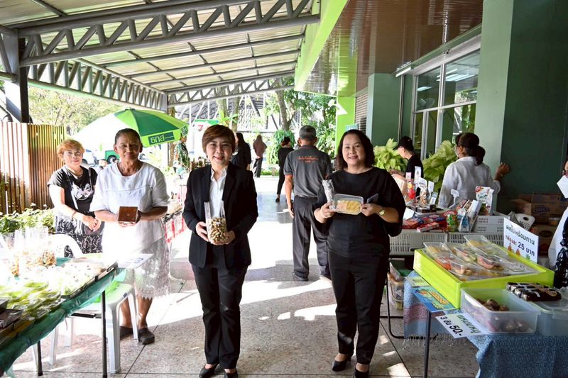 นางสาวเบญจพร ศักดิ์เรืองแมน ผู้อำนวยการเขตบึงกุ่ม พร้อมนางสายฝน สังข์วงค์ หัวหน้าฝ่ายพัฒนาชุมชนและสวัสดิการสังคม เยี่ยมชมและอุดหนุนสินค้าที่ผู้ประกอบการนำมาขาย ตามโครงการ “ตลาดนัดชุมชน.. ตลาดนัดเขต” ซึ่งเป็นการออกร้านค้าของคนในพื้นที่ ส่งเสริมผลิตภัณฑ์ในท้องถิ่น สร้างอาชีพเพิ่มรายได้ให้กับชาวชุมชน ณ บริเวณชั้น 1 หน้าอาคารสำนักงานเขตบึงกุ่ม