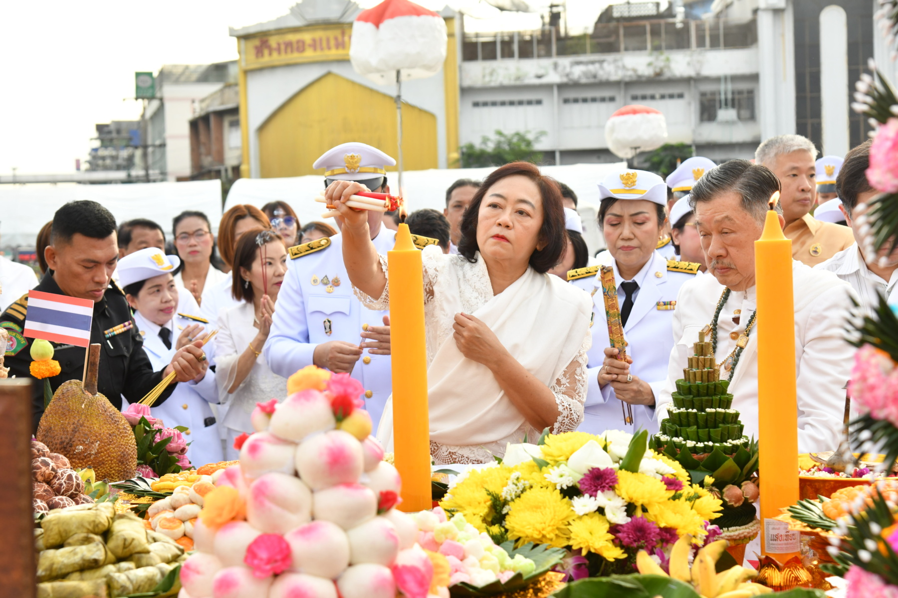 จากนั้น เวลา 06.30 น. นางสาวกนกวรรณ เอี่ยมลิ้ม รองปลัดกรุงเทพมหานคร เป็นประธานในพิธีเจริญพระพุทธมนต์ โดยพระเถรานุเถระ จำนวน 10 รูป และพิธีตักบาตรข้าวสารอาหารแห้งแด่พระสงฆ์ จำนวน 99 รูปและนางสาวอรัญญา พรไชยะ รองปลัดกรุงเทพมหานคร เป็นประธานในพิธีบวงสรวงดวงพระวิญญาณสมเด็จพระเจ้าตากสินมหาราช โดยมีคณะผู้บริหารกรุงเทพมหานคร ผู้อำนวยการเขต และคณะผู้บริหารเขตฝั่งธนบุรี หน่วยงานภาครัฐ ภาคเอกชน และภาคประชาชน เข้าร่วมพิธี ณ ลานพระบรมราชานุสาวรีย์สมเด็จพระเจ้าตากสินมหาราช (วงเวียนใหญ่) เขตธนบุรี