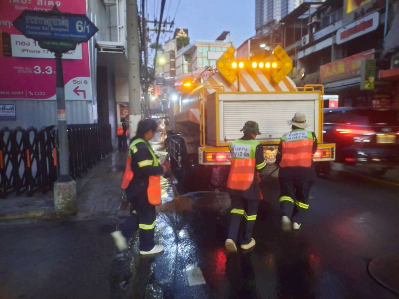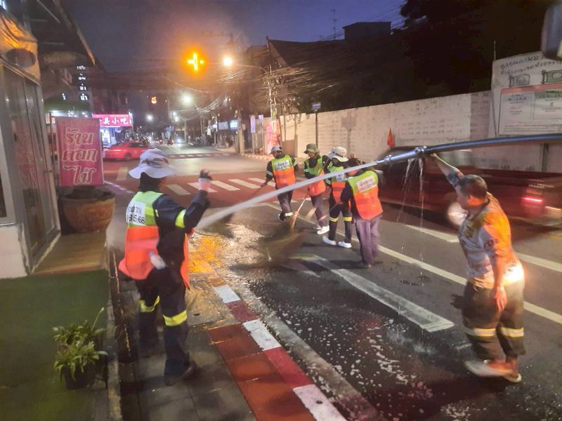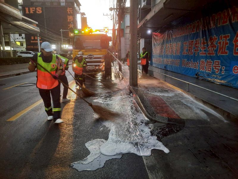 วันที่ 27 ธันวาคม 2568 เวลา 06.00 น. นายสมบัติ เครือกีรติธรรม ผู้อำนวยการเขตห้วยขวาง มอบหมายให้ นางสาวพรสุดา ผานุการณ์ ผู้ช่วยผู้อำนวยการเขตฯ และนางสาวศิริลัดดา จะงาม หัวหน้าฝ่ายรักษาความสะอาดฯ จัดเจ้าหน้าที่พร้อมรถบรรทุกน้ำ ดำเนินการล้างทำความสะอาดถนนและทางเท้า ถนนสายหลัก สายรอง ในพื้นที่เขตห้วยขวาง ณ ถนนประชาราษฎร์บำเพ็ญ จากสามแยกเขตถึงแยกห้วยขวาง (ทั้ง 2 ฝั่ง)