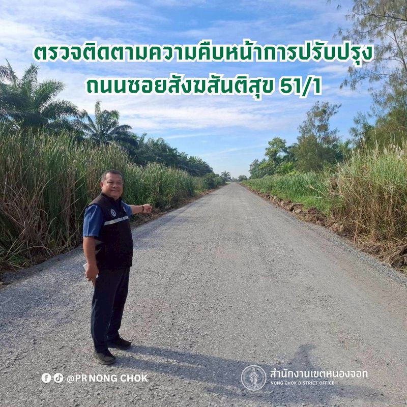 (28 ธ.ค. 68) นายแสวง จันทพันธ์ ผู้ช่วยผู้อำนวยการเขตหนองจอก ลงพื้นที่ตรวจติดตามความคืบหน้าการปรับปรุงถนนซอยสังฆสันติสุข 51/1 ถึงคลองหนึ่ง ซึ่งได้รับจัดสรรงบประมาณ ประจำปี พ.ศ. 2569 เพื่ออำนวยความสะดวกในการเดินทางให้กับประชาชน โดยปัจจุบันมีการดำเนินการไปแล้วประมาณ 30%