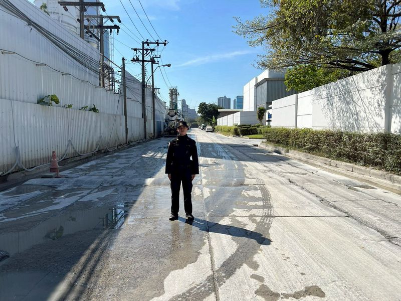 นายสมบัติ เครือกีรติธรรม ผู้อำนวยการเขตห้วยขวาง มอบหมายให้นายธำรงศักดิ์ หิตะโกวิท ผู้ช่วยผู้อำนวยการเขตฯ และนางสาวเสาวลักษณ์ จิรัฐตรีทิพ หัวหน้าฝ่ายเทศกิจ จัดเจ้าหน้าที่เทศกิจเขตห้วยขวาง