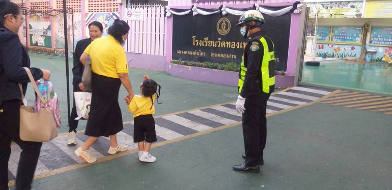 เวลา๐๖.๐๐น.-๐๘.๐๐น.เจ้าหน้าที่เทศกิจอาสาจราจร ปฏิบัติหน้าที่ตามโครงการ “พาน้องข้ามถนนและอาสาจราจรประจำหน้าโรงเรียน” พื้นที่เขตคลองสาน.ดูแลความปลอดภัย พาน้องข้ามถนนและอำนวยความสะดวกด้านการจราจร ให้แก่ครู นักเรียน ผู้ปกครอง และประชาชนที่สัญจรผ่านบริเวณทางข้าม หน้าโรงเรียนในพื้นที่เขตคลองสานดังนี้…