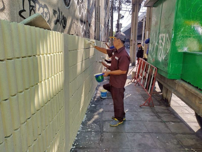 (29 ธ.ค. 68) สำนักงานเขตบางรัก ลงพื้นที่ตรวจติดตามการปรับปรุงภูมิทัศน์ บริเวณปากทางเข้าท่าเรือสาทร โดยเจ้าหน้าที่หน่วยเบสต์ (BEST) ฝ่ายโยธา ได้ดำเนินการทาสีกำแพงและตู้ควบคุมสัญญาณโทรศัพท์ เพื่อความสะอาดสวยงามและความเป็นระเบียบเรียบร้อยในพื้นที่