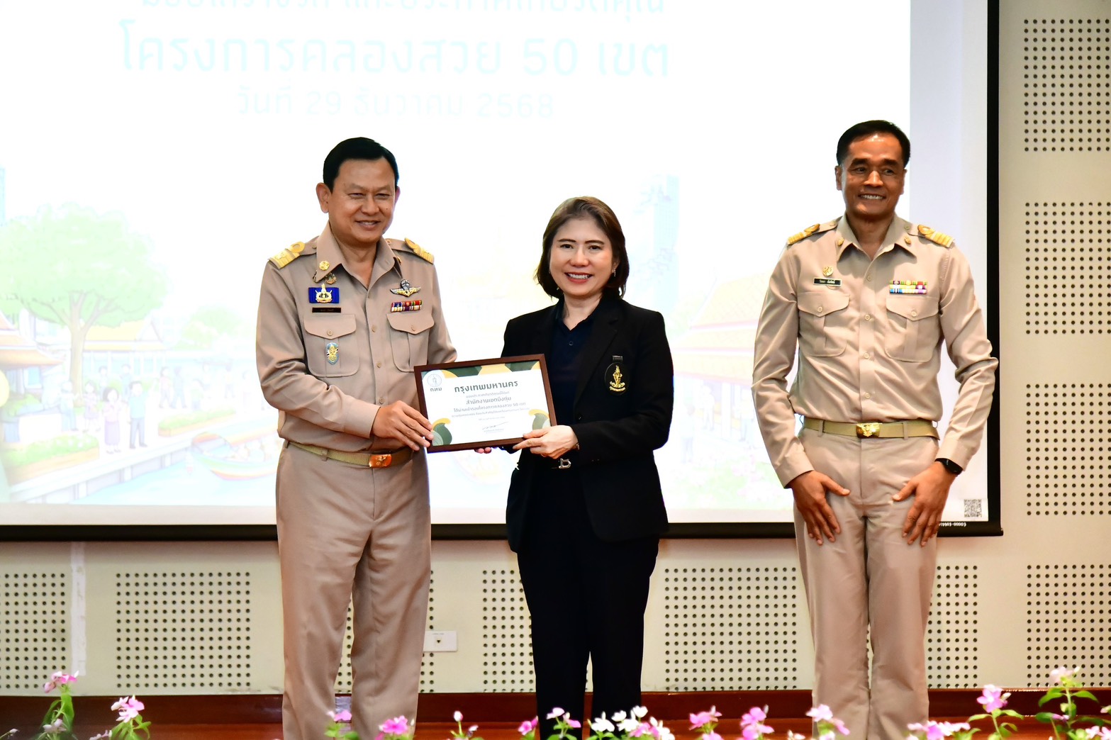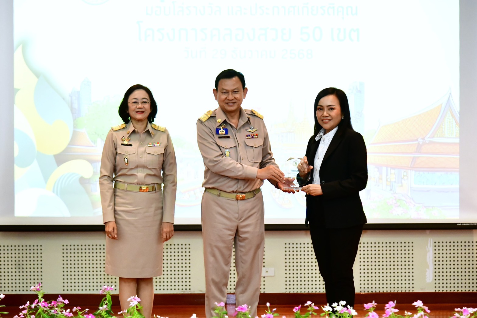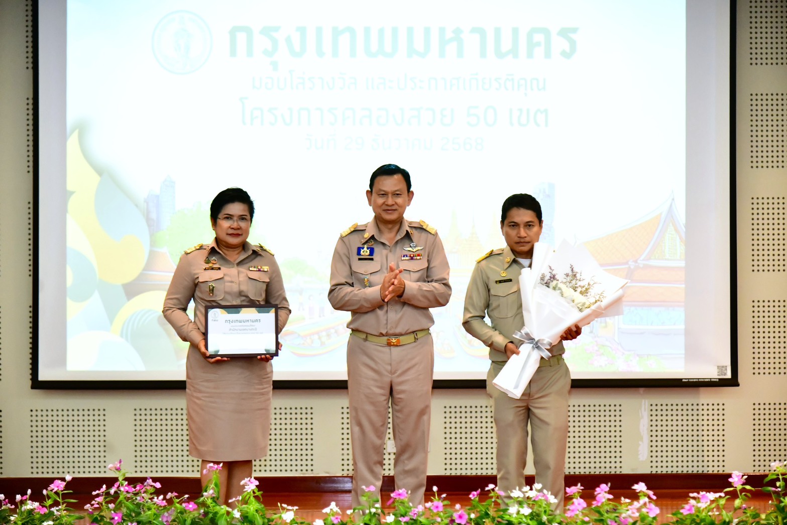 (29 ธ.ค. 68) นายณรงค์ เรืองศรี ปลัดกรุงเทพมหานคร เป็นประธานในพิธีมอบโล่รางวัลและประกาศเกียรติคุณ โครงการคลองสวย 50 เขต ณ ห้องประชุมใหญ่ ศูนย์การศึกษาและอนุรักษ์สิ่งแวดล้อมบางซื่อ เขตจตุจักร