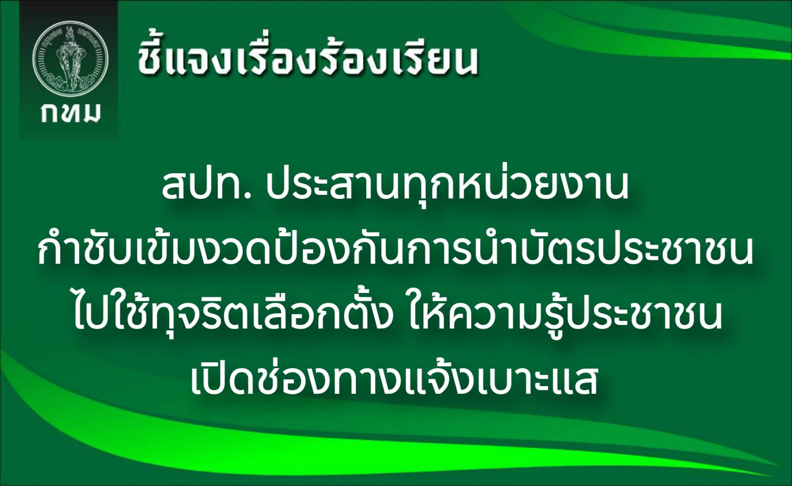 ขณะเดียวกัน ได้สนับสนุนและส่งเสริมความร่วมมือในการให้ความรู้แก่ผู้นำชุมชนและประชาชนผู้มีสิทธิเลือกตั้งในพื้นที่กรุงเทพฯ เพื่อเพิ่มความระมัดระวังและป้องกันมิให้มีการนำบัตรประจำตัวประชาชนไปใช้ในทางมิชอบ รวมถึงการสร้างความเข้าใจเกี่ยวกับบทลงโทษตามกฎหมายที่เกี่ยวข้อง และประชาสัมพันธ์ช่องทางการแจ้งเบาะแสหากพบพฤติการณ์ที่อาจเข้าข่ายการทุจริตการเลือกตั้ง ทั้งนี้ เพื่อให้การจัดการเลือกตั้งในพื้นที่กรุงเทพฯ เป็นไปโดยสุจริต ยุติธรรม โปร่งใส และปราศจากการซื้อสิทธิขายเสียง