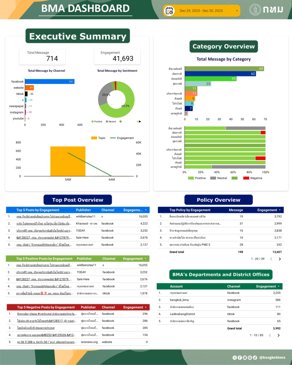 ภาพรวมการกล่าวถึงกรุงเทพมหานครในสื่อออนไลน์ วันที่ 30 ธ.ค. 68