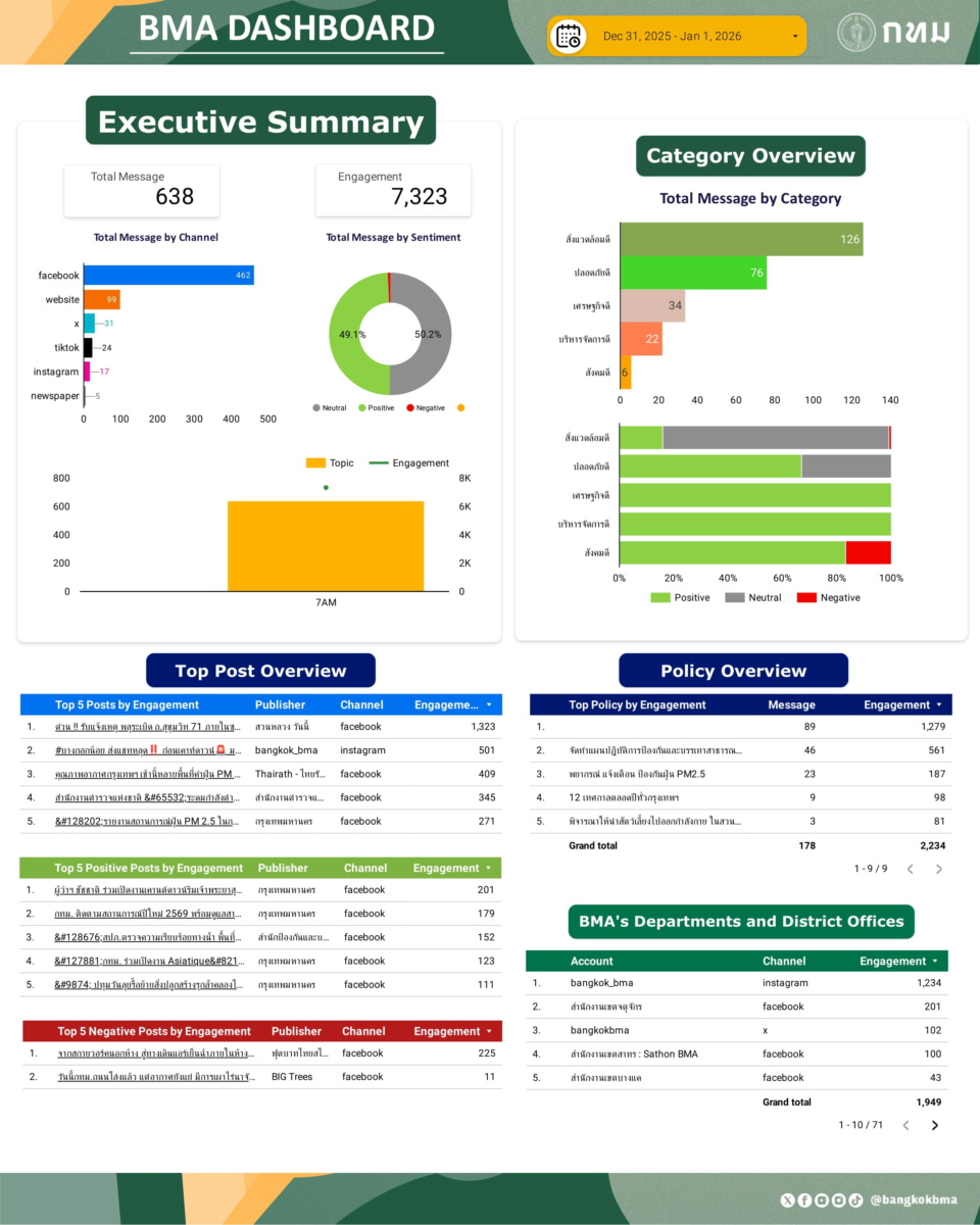 ภาพรวมการกล่าวถึงกรุงเทพมหานครในสื่อออนไลน์ วันที่ 1 ม.ค. 69
