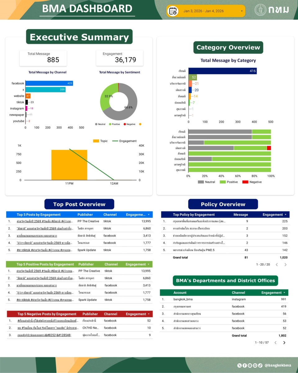 ภาพรวมการกล่าวถึงกรุงเทพมหานครในสื่อออนไลน์ วันที่ 4 ม.ค. 69