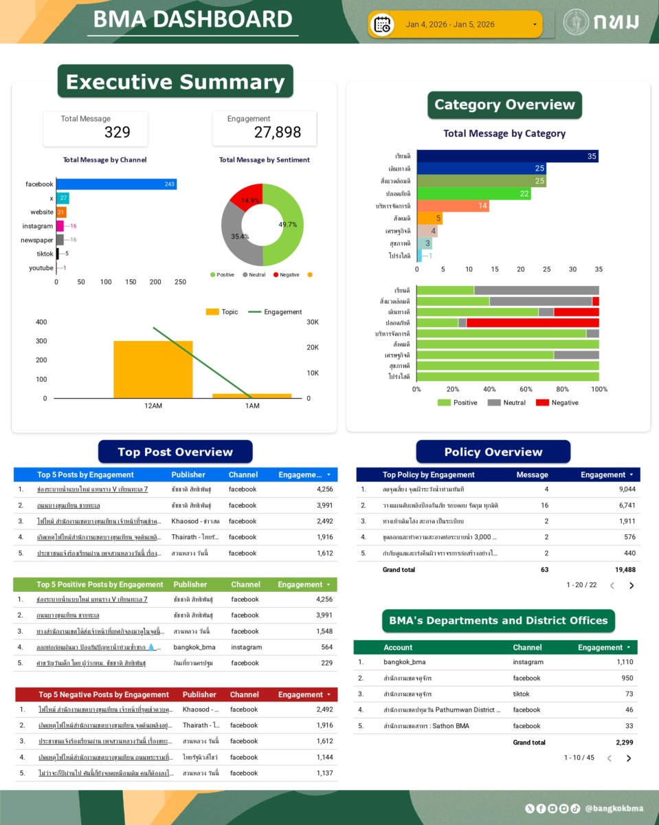 ภาพรวมการกล่าวถึงกรุงเทพมหานครในสื่อออนไลน์ วันที่ 5 ม.ค. 69