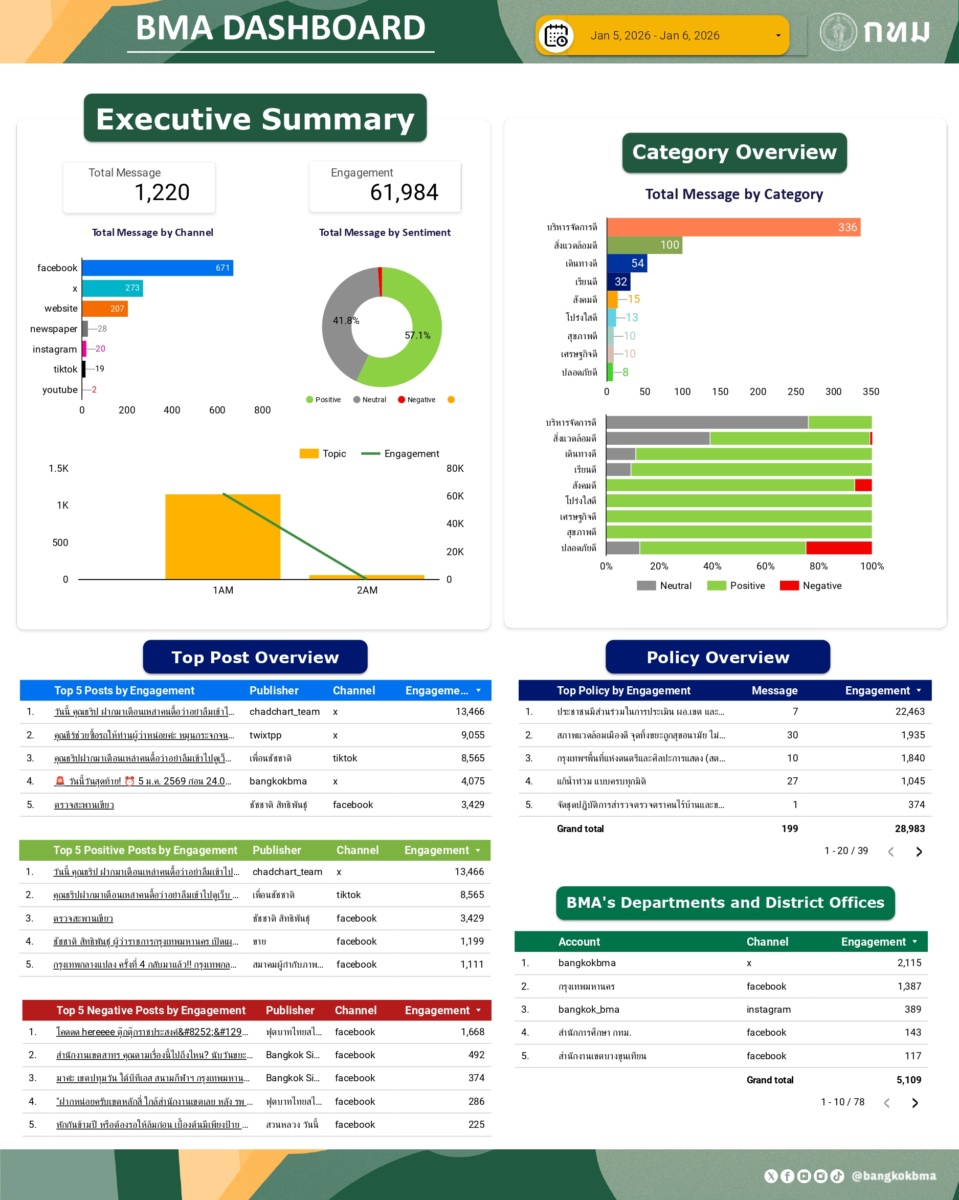 ภาพรวมการกล่าวถึงกรุงเทพมหานครในสื่อออนไลน์ วันที่ 6 ม.ค. 69