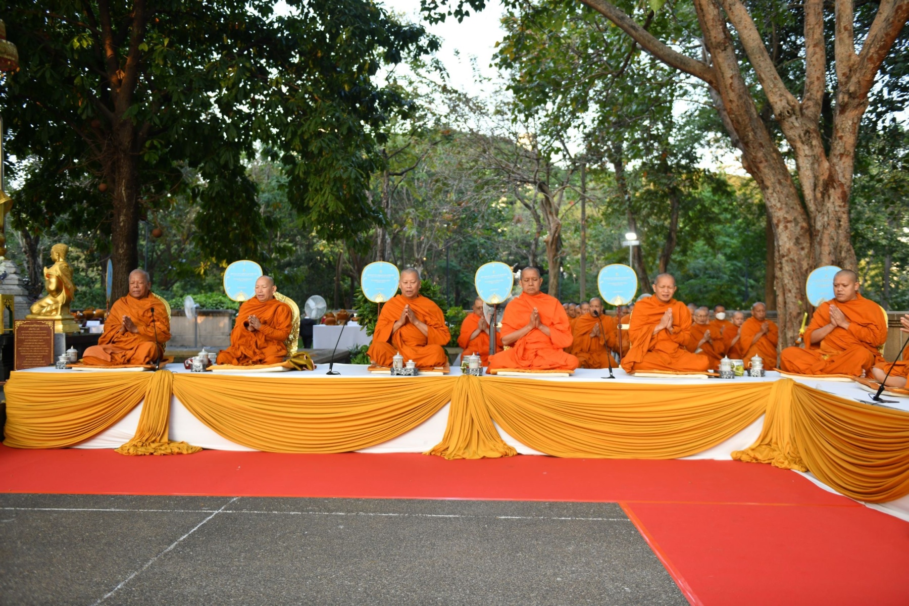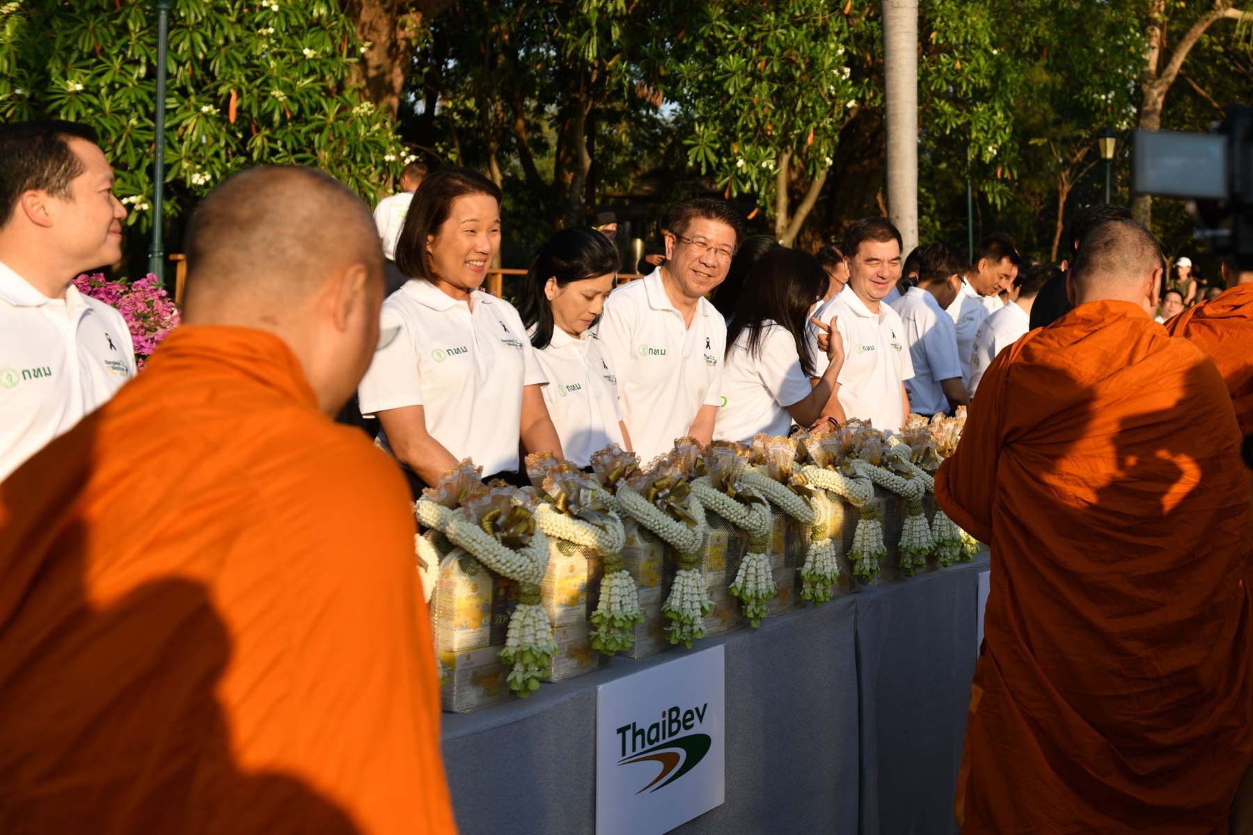 ในช่วงเช้า ผู้ว่าราชการกรุงเทพมหานครเป็นประธานในพิธีทำบุญตักบาตรพระสงฆ์ จำนวน 109 รูป โดยได้จุดธูปเทียนบูชาพระรัตนตรัยหน้าโต๊ะหมู่บูชา อาราธนาศีล และรับศีลจากประธานสงฆ์ จากนั้นพระสงฆ์ 10 รูป เจริญพระพุทธมนต์ถวายพรพระ ก่อนที่ประธานในพิธีและผู้ร่วมพิธีจะถวายจตุปัจจัยและไทยธรรมแด่พระสงฆ์ พระสงฆ์อนุโมทนาและอำนวยพร ต่อด้วยการกรวดน้ำ รับพร และกราบลาพระรัตนตรัยพร้อมกัน ก่อนที่ประธานในพิธี ข้าราชการ และพุทธศาสนิกชนจะร่วมกันตักบาตรข้าวสารอาหารแห้งแด่พระสงฆ์ จำนวน 109 รูป เป็นอันเสร็จพิธี