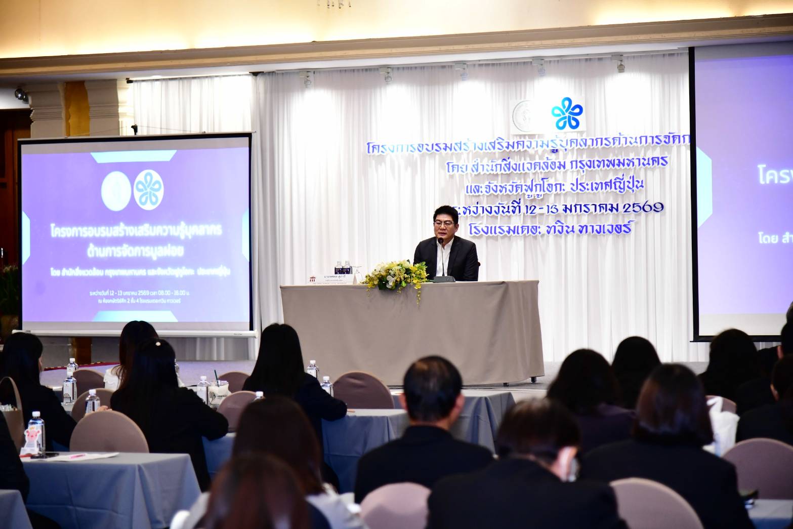 สำหรับการอบรมในครั้งนี้ มีวัตถุประสงค์เพื่อเพิ่มพูนความรู้ความเข้าใจต่อการปฏิบัติงานด้านการจัดการมูลฝอยอย่างมีประสิทธิภาพตามมาตรฐานสากล รวมถึงแลกเปลี่ยนความรู้และประสบการณ์ในการปฏิบัติงานกับผู้เชี่ยวชาญจากจังหวัดฟูกูโอกะ สามารถนำความรู้ไปต่อยออดและส่งเสริมการจัดการมูลฝอยที่มีประสิทธิภาพในพื้นที่กรุงเทพมหานคร โดยมีกลุ่มเป้าหมาย ประกอบด้วย ข้าราชการกรุงเทพมหานครสามัญ ตำแหน่งนักจัดการงานรักษาความสะอาด ระดับปฏิบัติการ-ชำนาญการพิเศษ และ/หรือประเภททั่วไป ตำแหน่งเจ้าหน้าที่งานรักษาความสะอาด ระดับปฏิบัติงาน-อาวุโส สังกัดฝ่ายรักษาความสะอาดและสวนสาธารณะ จากสำนักงานเขต ๆ ละ 2 คน รวมจำนวน 100 คน กำหนดจัดอบรมระหว่างวันที่ 12-13 ม.ค.69 เป็นระยะเวลา 2 วัน ในโอกาสนี้ ได้รับเกียรติจากวิทยากรผู้เชี่ยวชาญจากจังหวัดฟูกูโอกะ ประเทศญี่ปุ่น ศูนย์สุขาภิบาลสิ่งแวดล้อมญี่ปุ่น และมูลนิธิสิ่งแวดล้อมฟูกูโอกะ มาถ่ายทอดองค์ความรู้ที่เป็นประโยชน์ต่อการปฏิบัติงานโดยตรง