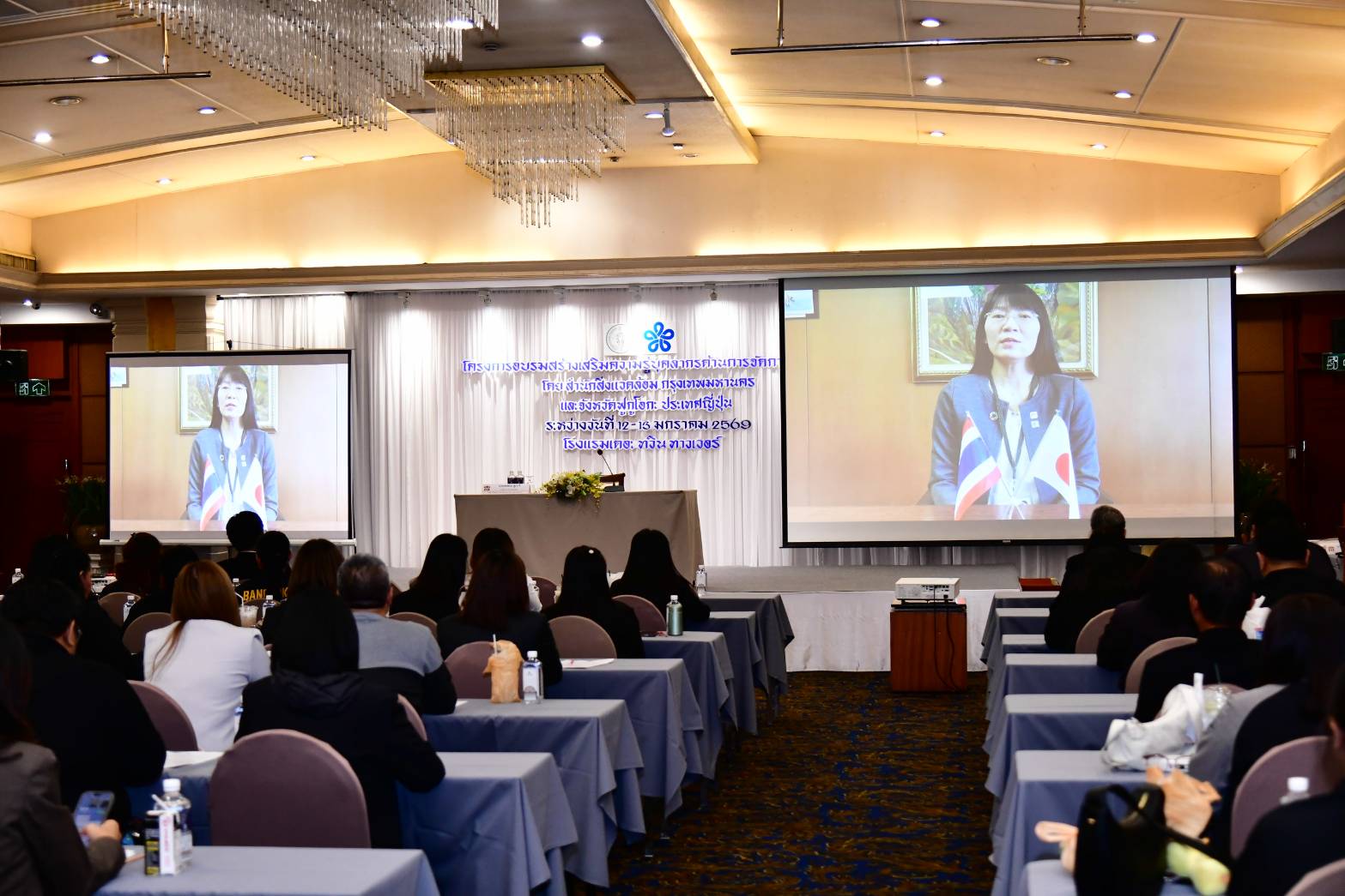 ในการนี้ นางคายาโกะ ฮาราคะ รองผู้อำนวยการสำนักสิ่งแวดล้อม และผู้อำนวยการกองนโยบายสิ่งแวดล้อม สำนักสิ่งแวดล้อม จังหวัดฟูกูโอกะ กล่าวถึงความร่วมมือผ่านระบบออนไลน์ นายภาณุวัฒน์ อ่อนเทศ ผู้อำนวยการสำนักงานยุทธศาสตร์จัดการมูลฝอย สำนักสิ่งแวดล้อม พร้อมด้วยคณะผู้บริหาร ข้าราชการ และเจ้าหน้าที่สำนักสิ่งแวดล้อม สำนักงานการต่างประเทศ เจ้าหน้าที่และวิทยากรจากจังหวัดฟูกูโอกะ ประเทศญี่ปุ่น และผู้เข้ารับการอบรม ร่วมพิธี