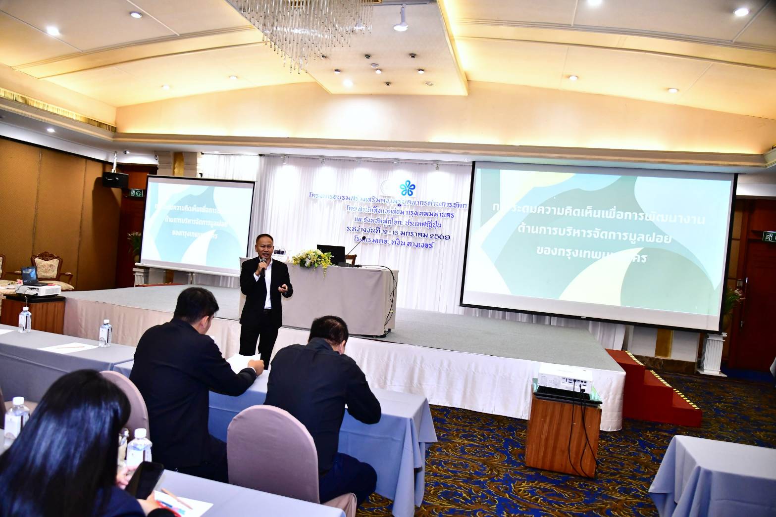 รองผู้อำนวยการสำนักสิ่งแวดล้อม กล่าวว่า โครงการอบรมสร้างเสริมความรู้บุคลากรด้านการจัดการมูลฝอย มีวัตถุประสงค์อันสำคัญยิ่ง ซึ่งสะท้อนให้เห็นถึงความสำคัญในการพัฒนาศักยภาพ และการยกระดับดับขีดความสามารถของบุคลากรผู้ปฏิบัติงานด้านการจัดการมูลฝอย ด้วยการจัดการมูลฝอยอย่างมีประสิทธิภาพ ตั้งแต่ต้นทาง กลางทาง จนถึงปลายทาง ถือว่าเป็นพันธกิจหลัก ที่ไม่เพียงแต่ช่วยลดผลกระทบต่อสิ่งแวดล้อมและคุณภาพชีวิตของประชาชน แต่ยังเป็นกุญแจสำคัญในการขับเคลื่อนเป้าหมายด้านการจัดการมูลฝอยของกรุงเทพมหานครให้บรรลุผลสำเร็จตามแผนงานที่กำหนดไว้