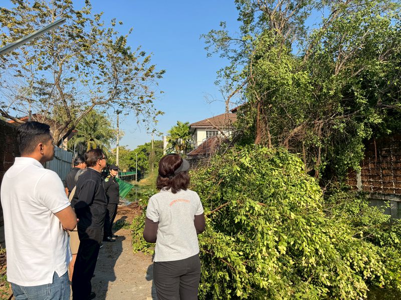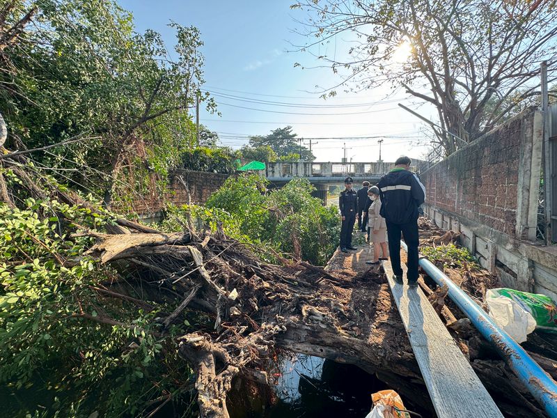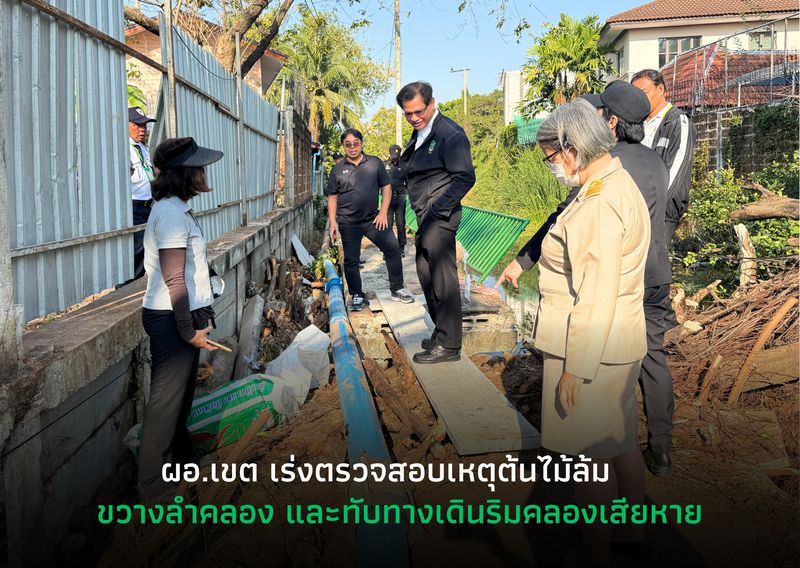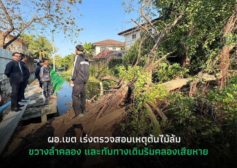 >>นายศักดิ์เทพ เกียรติพิชญา ผู้อำนวยการเขตบางเขน พร้อมนางสาวอัมพันธ์ เนกขัมม์ ผู้ช่วยผู้อำนวยการเขต เจ้าหน้าที่ฝ่ายโยธา ฝ่ายรักษาความสะอาดฯ ฝ่ายเทศกิจ ลงพื้นที่ตรวจสอบความเสียหายเหตุต้นไม้ล้มพาดขวางลำคลองและทับเส้นทางเดินริมคลอง ส่งผลให้โครงสร้างทางเดินบางส่วนได้รับความเสียหาย