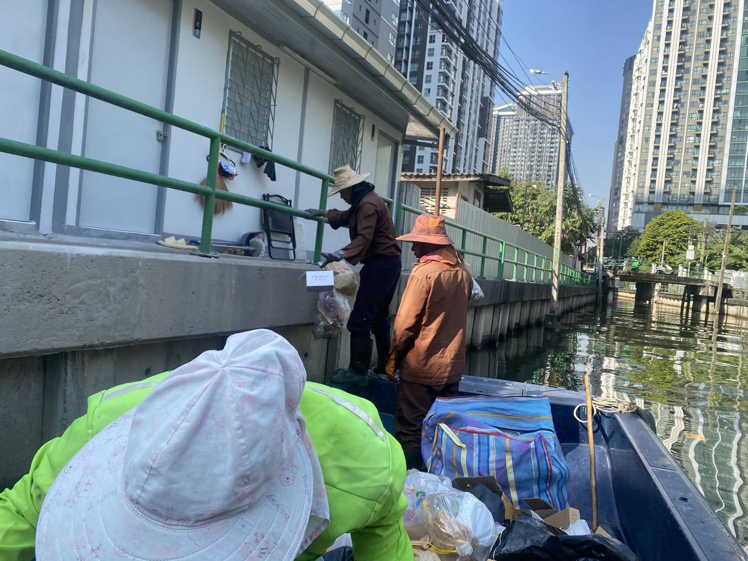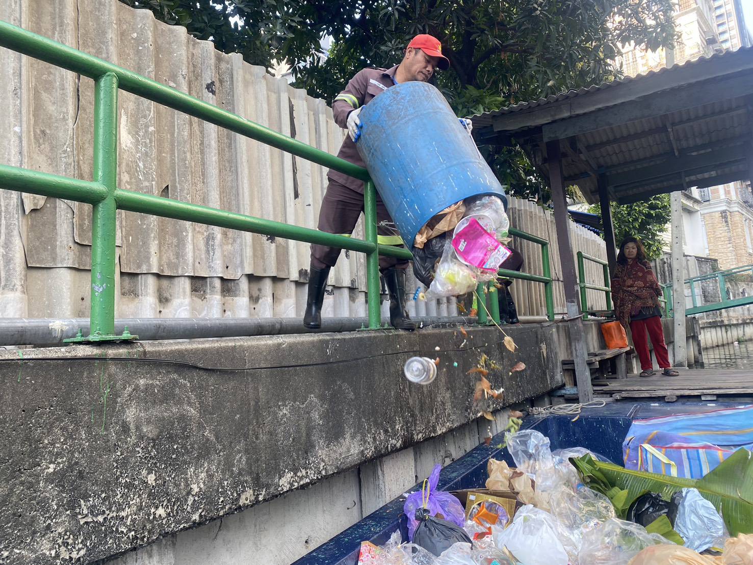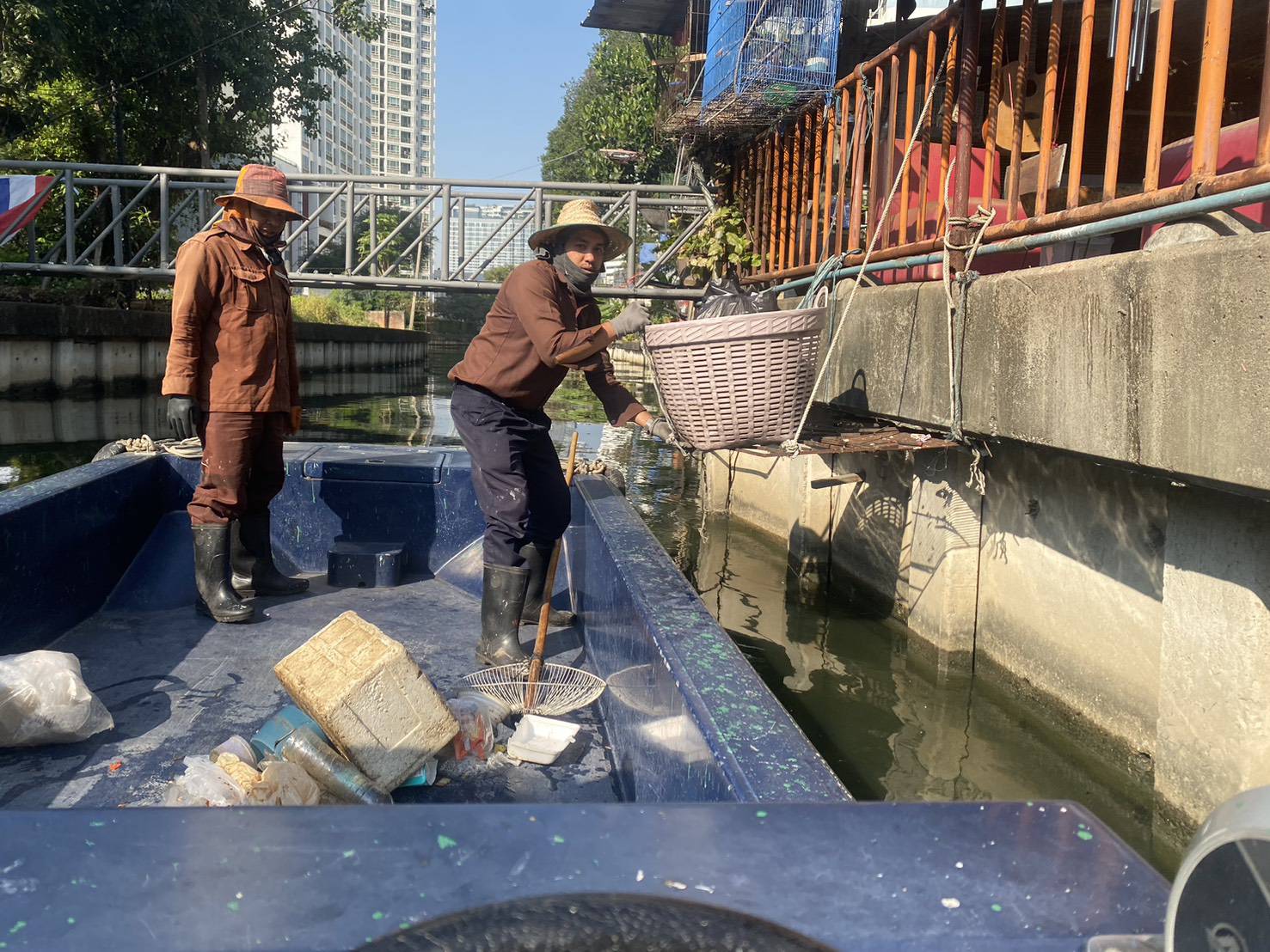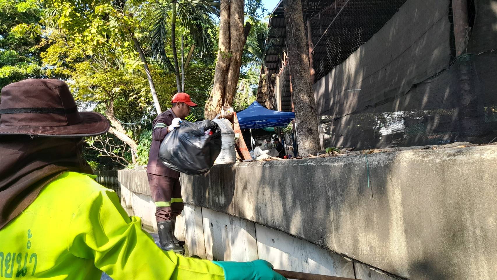 เจ้าหน้าที่ เก็บขยะแนวสันเขื่อนและตักขยะในคลองสามเสน เขตห้วยขวาง เขตดินแดงและเขตราชเทวี