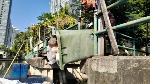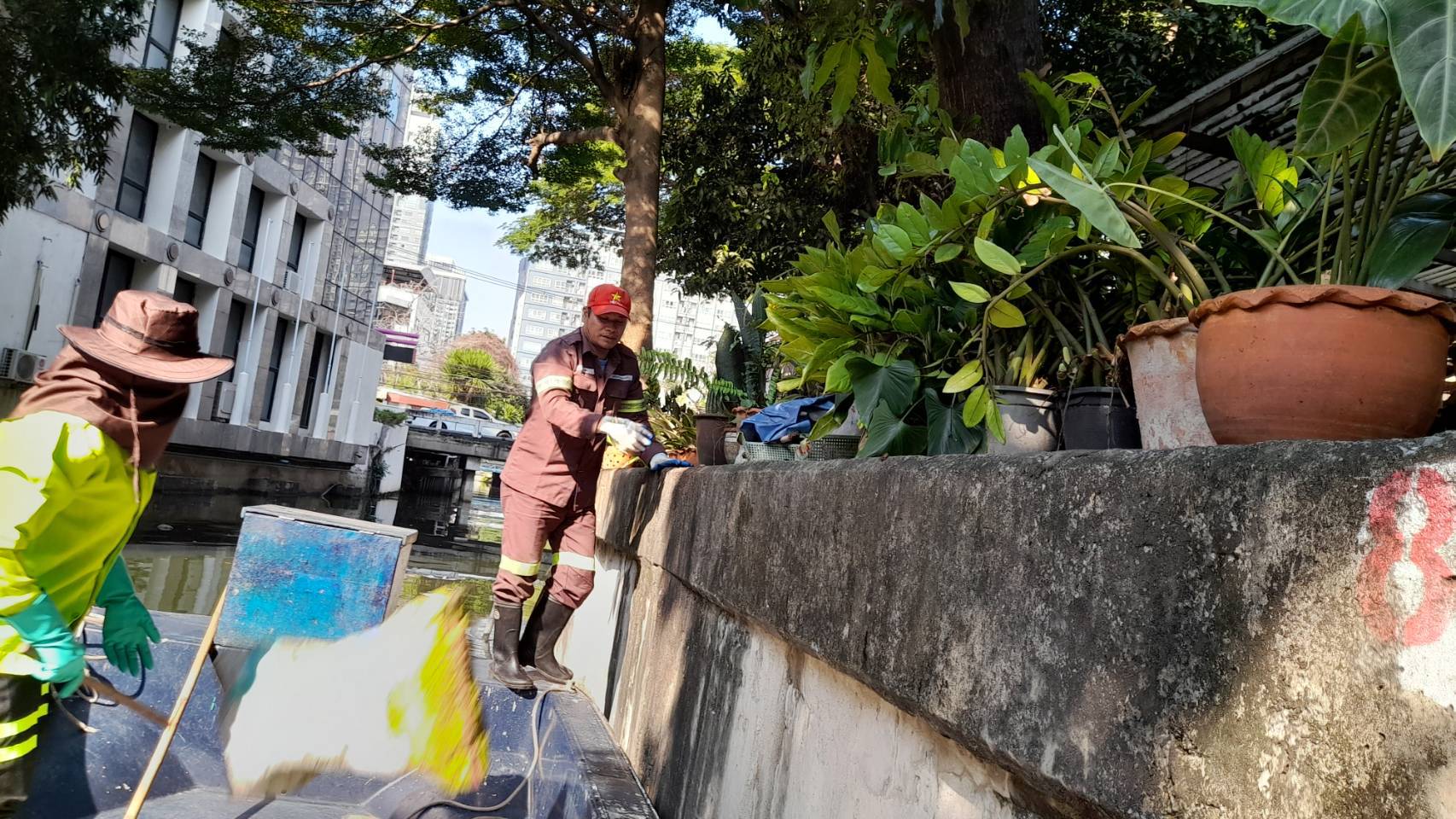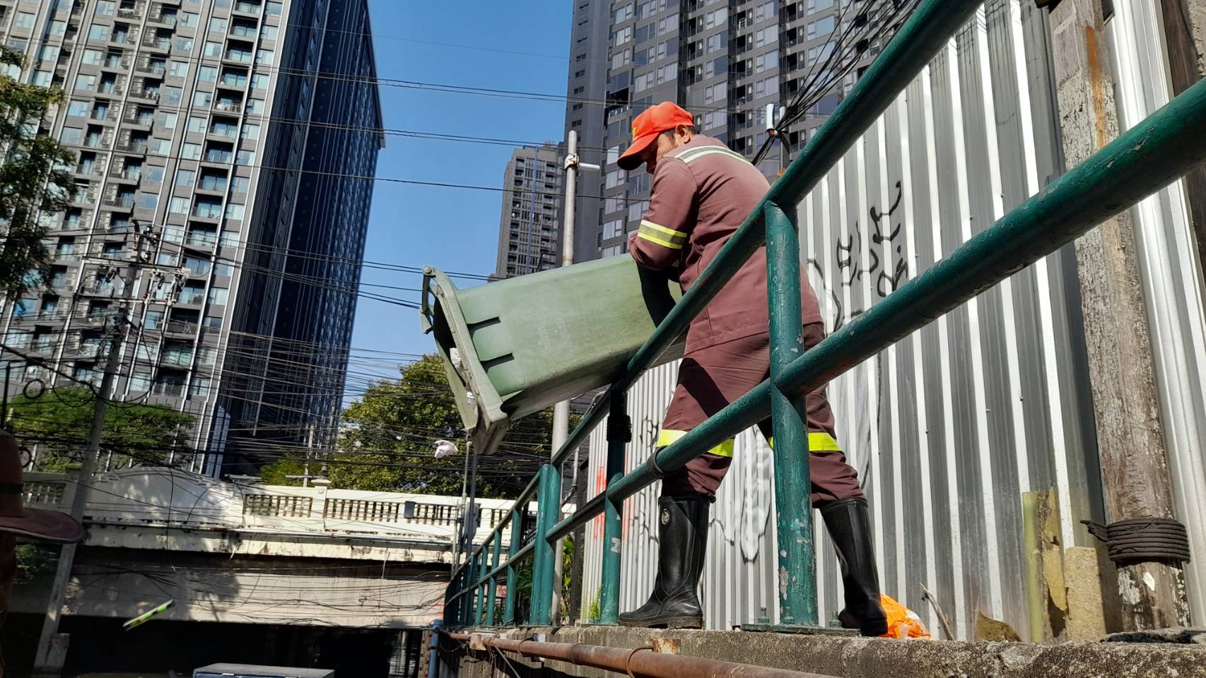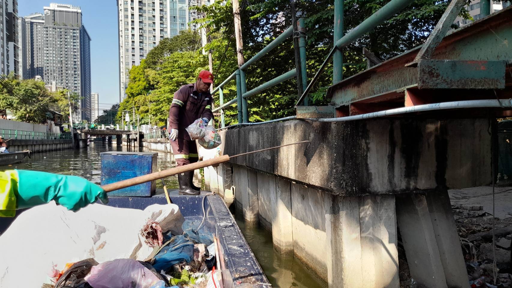 เจ้าหน้าที่ เก็บขยะแนวสันเขื่อนและตักขยะในคลองสามเสน เขตห้วยขวาง เขตดินแดงและเขตราชเทวี