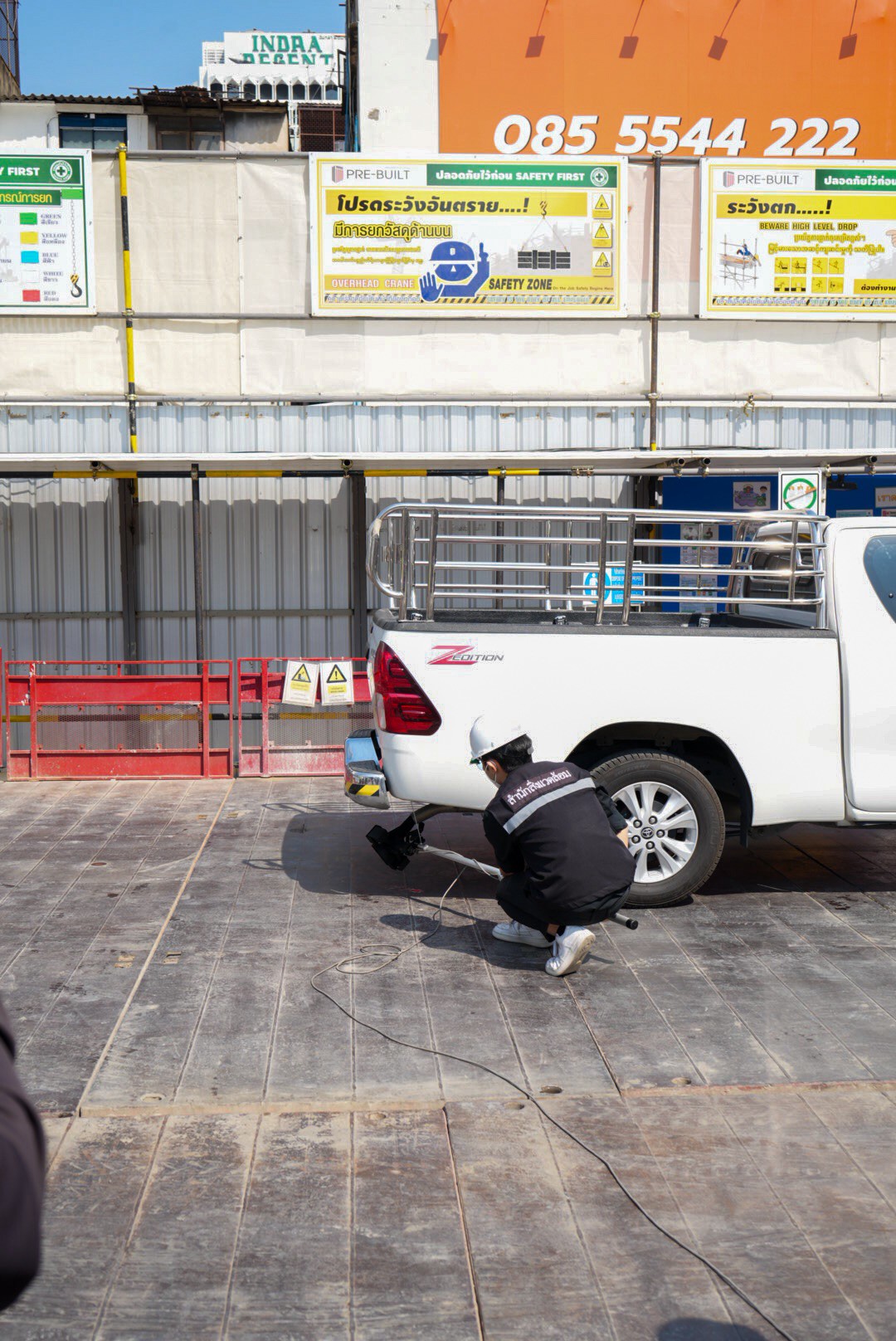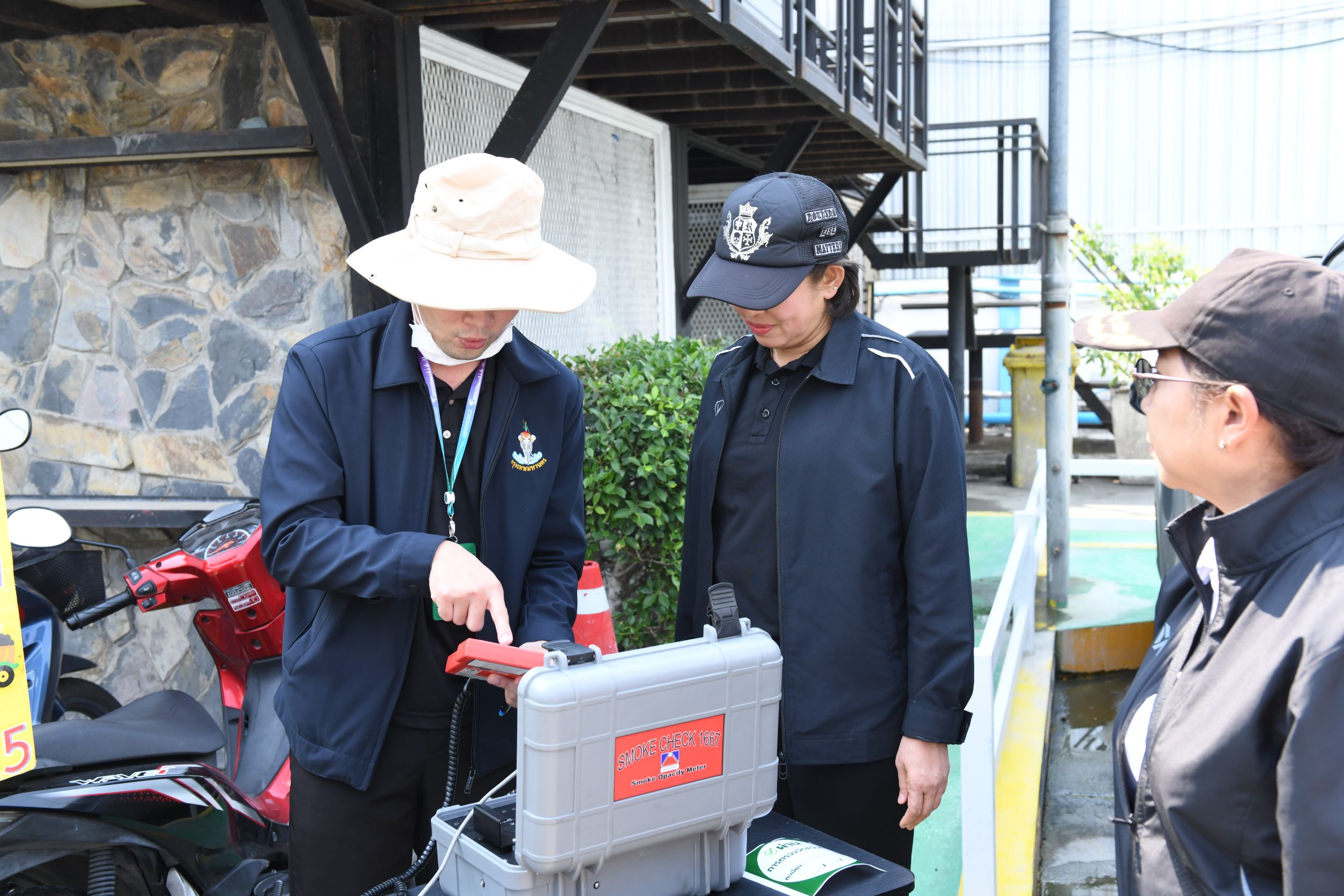 ผลการตรวจการฉีดพ่นละอองน้ำ พบว่า ทั้ง 3 ไซต์ก่อสร้างได้ดำเนินการฉีดพ่นละอองน้ำบริเวณรอบรั้วโครงการ ทั้งยังได้ฉีดล้างล้อรถก่อนออกจากไซต์ก่อสร้าง เพื่อป้องกันโคลนและดินไม่ให้เลอะถนนสาธารณะ ลดปัญหาฝุ่นละอองและสร้างความปลอดภัยแก่ผู้ใช้รถใช้ถนน ด้านผลการตรวจรั้วไซต์ก่อสร้าง พบว่า ความสูงผ่านเกณฑ์ที่กำหนด (8 เมตร) จำนวน 2 ไซต์ และต้องปรับปรุง 1 ไซต์ ในส่วนของผลการตรวจสอบค่าควันดำรถยนต์ โดยสุ่มตรวจจำนวน 9 คัน พบว่า ไม่เกินเกณฑ์มาตรฐานที่กำหนดจำนวน 6 คัน และเกินเกณฑ์ฯ จำนวน 3 คัน