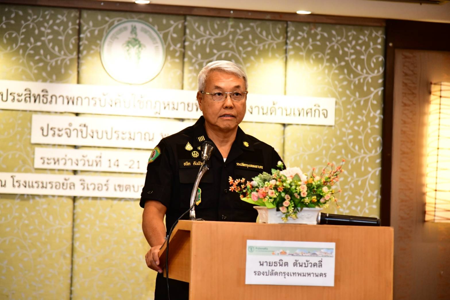 รองปลัดกรุงเทพมหานคร กล่าวว่า กฎหมายเปรียบเสมือนกรอบที่กำหนดแนวทางและบรรทัดฐาน ในการดำเนินชีวิตของประชาชนในสังคม ย่อมมีการเปลี่ยนแปลงไปตามสภาพแวดล้อมและบริบทของสังคม การพัฒนาปรับปรุงแก้ไขกฎหมายจึงเป็นสิ่งที่เกิดขึ้นอย่างต่อเนื่อง เพื่อตอบสนองต่อสิทธิ หน้าที่ และเสรีภาพ ในการดำเนินชีวิตของประชาชน เจ้าหน้าที่สายงานเทศกิจ ถือว่าเป็นบุคลากรที่เป็นฟันเฟืองสำคัญในการขับเคลื่อนความเป็นระเบียบเรียบร้อยของชุมชนเมือง มีบทบาทหน้าที่ในการบังคับใช้กฎหมายเพื่อดูแลความเป็นระเบียบเรียบร้อยและความปลอดภัยของประชาชน ดังนั้น การพัฒนาความรู้ด้านกฎหมายให้กับผู้ปฏิบัติภารกิจดังกล่าว จึงเป็นสิ่งสำคัญที่ต้องดำเนินการ เพื่อให้ผู้ปฏิบัติงานสามารถบังคับใช้กฎหมายได้อย่างถูกต้อง มีความเหมาะสม และเป็นไปในทิศทางเดียวกัน ซึ่งจะส่งผลให้กรุงเทพมหานคร เกิดความเป็นระเบียบเรียบร้อย นำไปสู่การยกระดับคุณภาพชีวิตของประชาชน ตลอดจนสังคมและเศรษฐกิจของกรุงเทพมหานครให้ได้รับการพัฒนาอย่างยั่งยืน ขอให้ผู้เข้ารับการอบรมให้ความสำคัญและตั้งใจรับความรู้เก็บเกี่ยวประสบการณ์ เพื่อจะได้นำไปปรับใช้ในการปฏิบัติงานในพื้นที่ สามารถใช้กฎหมายที่เกี่ยวกับงานด้านเทศกิจให้เกิดประสิทธิภาพต่อไป