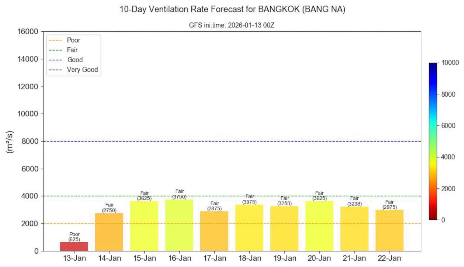 สำหรับสาเหตุที่ช่วงนี้ค่าฝุ่นสูงมีหลายปัจจัย อาทิ อัตราการระบายอากาศต่ำต่อเนื่องมา 4 วัน เปรียบเสมือนอยู่ในห้องที่ปิดประตูหน้าต่าง ทำให้ฝุ่นสะสม ส่วนเรื่องการเผา กทม. พยายามลดมาโดยตลอด ต้องขอบคุณจังหวัดข้างเคียงที่ให้ความร่วมมือ เนื่องจากช่วงนี้จุดเผาในกรุงเทพฯ ไม่ได้มีจำนวนมาก จังหวัดนครนายกแทบไม่มี อาจมีในจังหวัดปราจีนบุรีและประเทศเพื่อนบ้านบ้าง อย่างไรก็ตาม ช่วงกลางคืนที่ผ่านมาอัตราการระบายอากาศต่ำมาก เฉลี่ยเหลือเพียงประมาณ 200 กว่าตารางเมตรต่อวินาที ซึ่งต่ำกว่าเกณฑ์ 2,000 ถือว่าต่ำมาก ส่งผลให้ฝุ่นสะสมในช่วงกลางคืน แต่วันนี้อัตราการระบายอากาศจะดีขึ้น