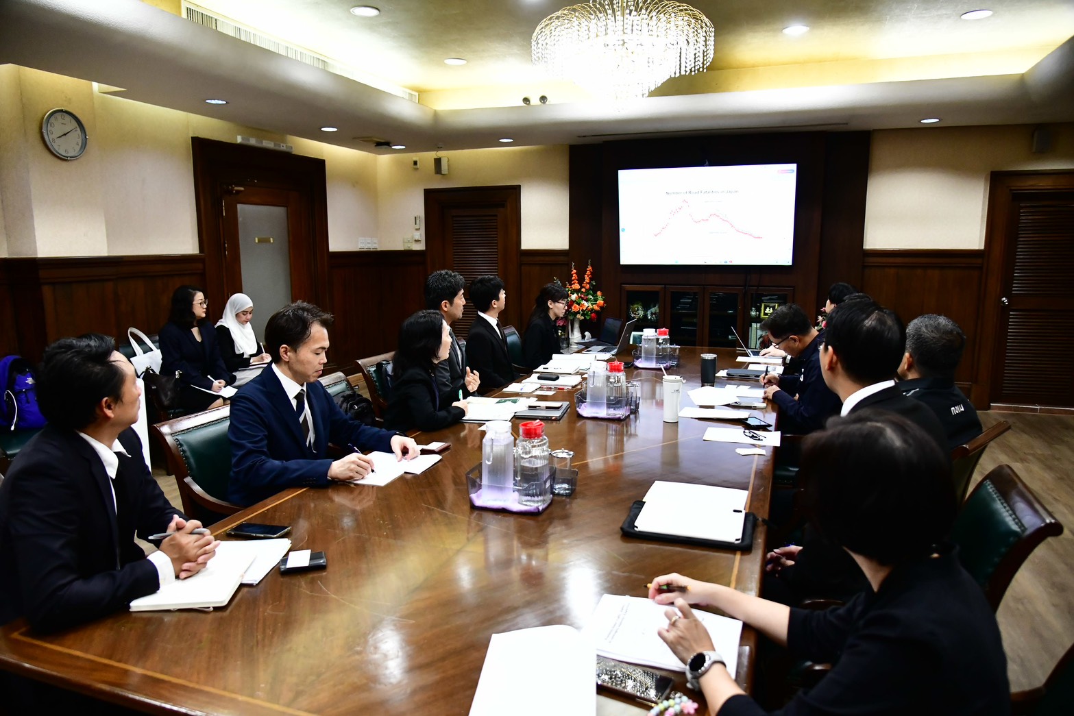 การเข้าพบในครั้งนี้ ผู้ว่าฯ ชัชชาติ ได้รับฟังและแลกเปลี่ยนประสบการณ์ด้านการบริหารจัดการจราจรของกรุงเทพมหานคร รวมถึงการแบ่งปันแนวปฏิบัติที่ดีจากประเทศญี่ปุ่น โดยมีประเด็นหารือสำคัญ ประกอบด้วย กลไกการประสานงานและปัจจัยความสำเร็จในการทำงานร่วมกับหน่วยงานที่เกี่ยวข้อง ผลการดำเนินงานและทิศทางในอนาคตของโครงการส่งเสริมความปลอดภัยทางถนนในนักเรียนระดับประถมศึกษา ตลอดจนโอกาสและแนวทางความร่วมมือกับภาคเอกชนในอนาคต