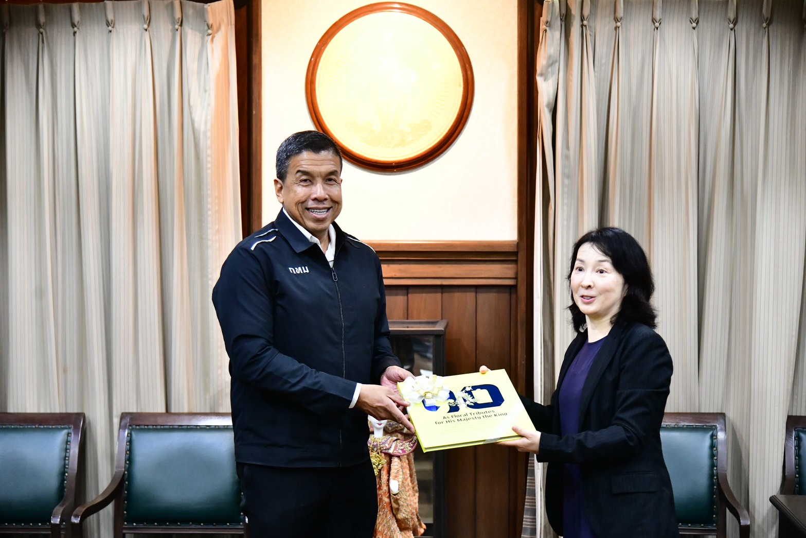 ภายหลังการเข้าพบ คณะผู้แทนได้เยี่ยมชมศูนย์ระบบเทคโนโลยีจราจร (เสาชิงช้า) เพื่อรับฟังการบรรยายเกี่ยวกับการบริหารจัดการและบูรณาการข้อมูลจราจรระหว่างหน่วยงาน รวมถึงแนวทางการนำเทคโนโลยีใหม่มาใช้ในการยกระดับการจัดการจราจรเมืองในอนาคต ซึ่งถือเป็นอีกก้าวสำคัญของความร่วมมือระหว่างกรุงเทพมหานครและรัฐบาลญี่ปุ่นในการพัฒนาเมืองที่ปลอดภัยและมีประสิทธิภาพอย่างยั่งยืน โอกาสนี้ ผู้ว่าฯ ชัชชาติ ได้มอบหนังสือ As Floral Tributes for His Majesty the King เป็นของที่ระลึก