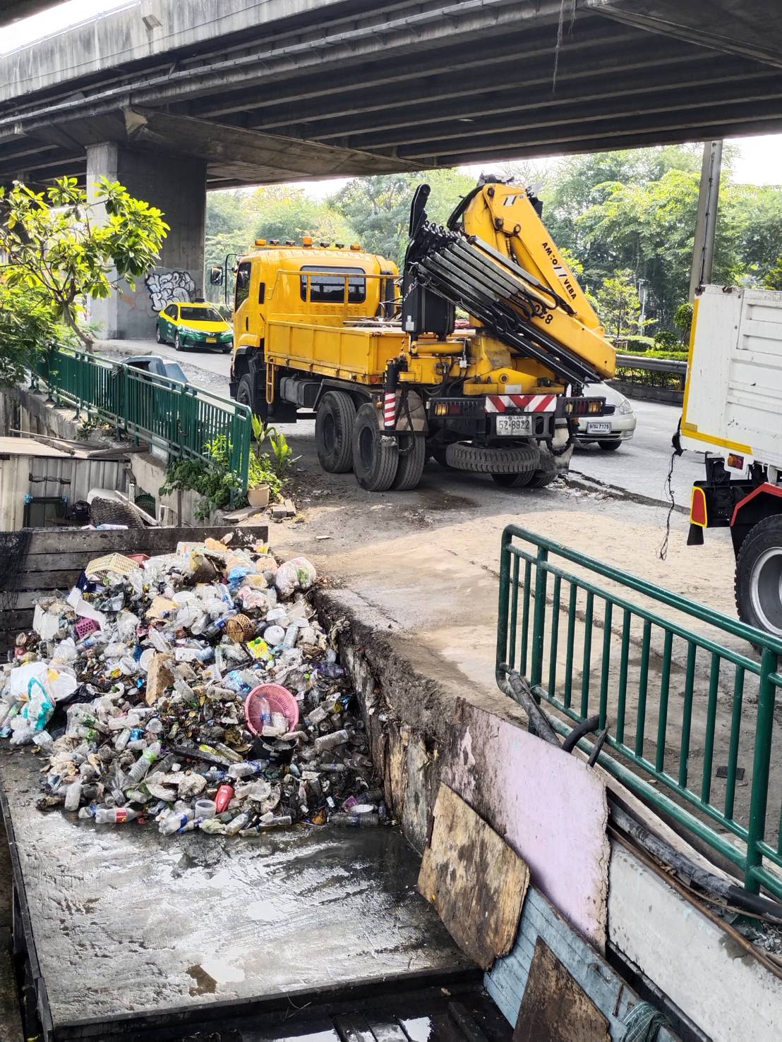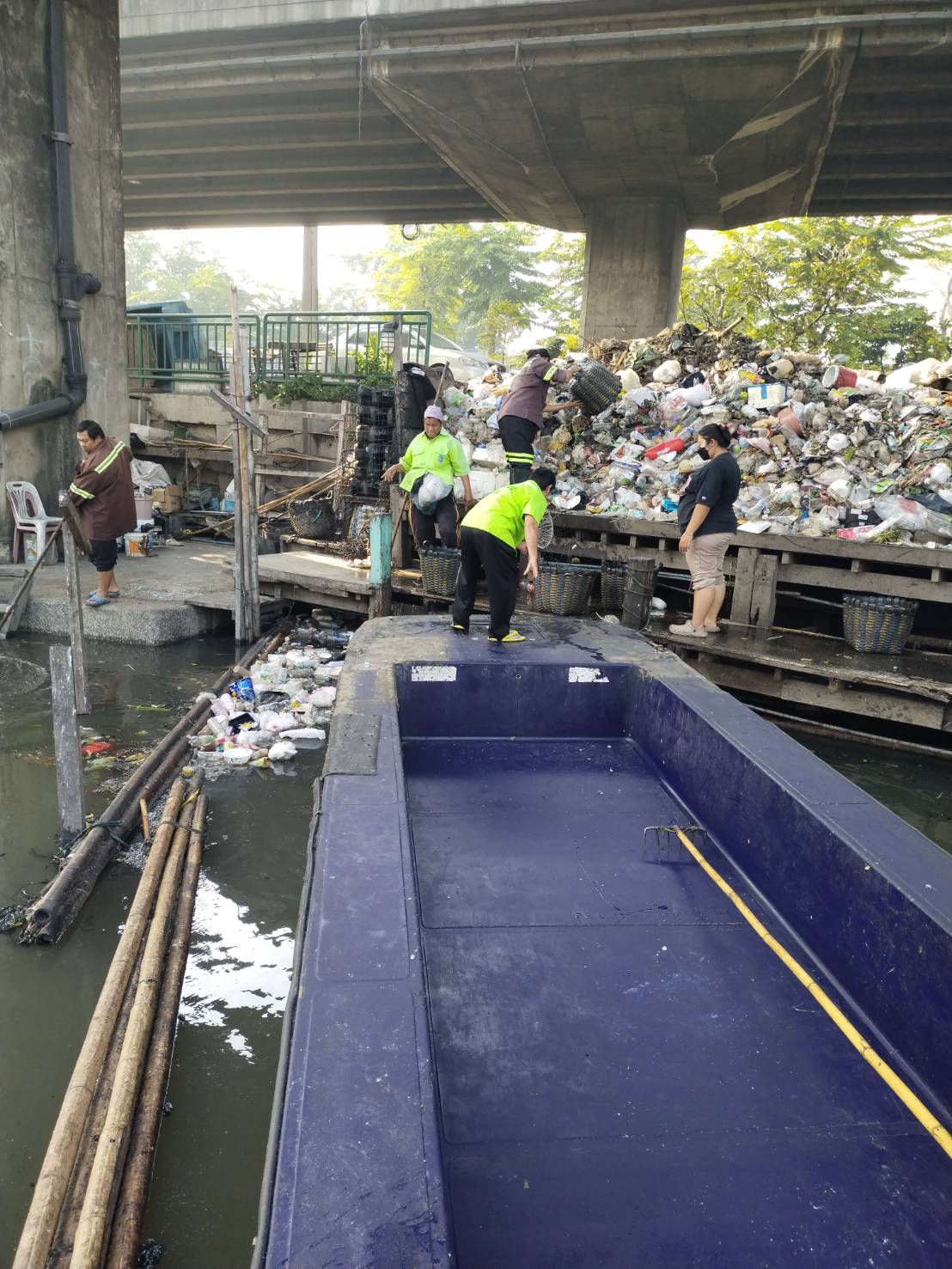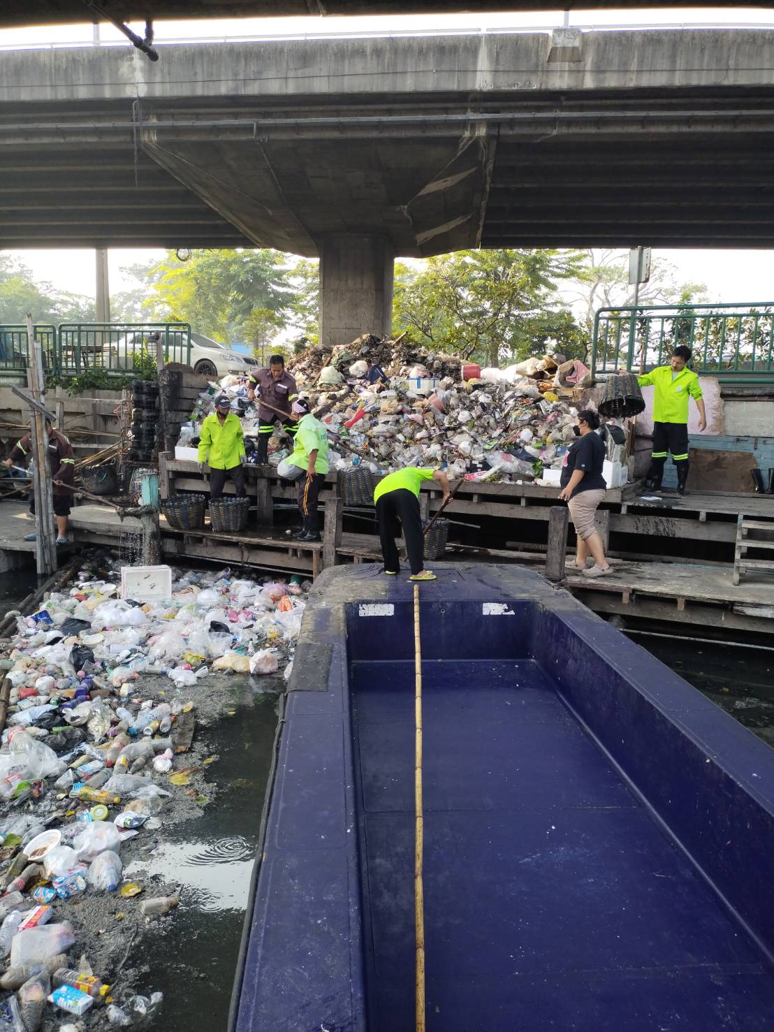 เจ้าหน้าที่ ตักขยะและวัชพืชคลองเตย(คลองหัวลำโพง)ช่วงสถานีสูบน้ำคลองเตยถึงตลาดคลองเตย พื้นที่เขตคลองเตย