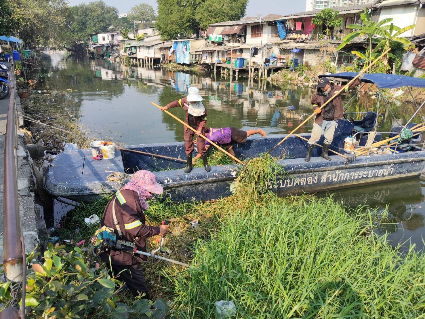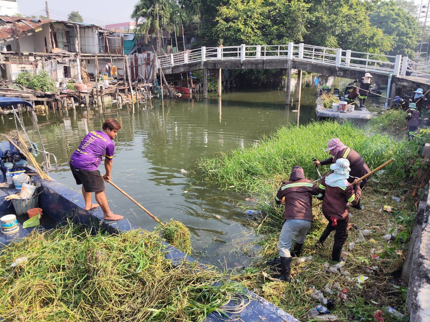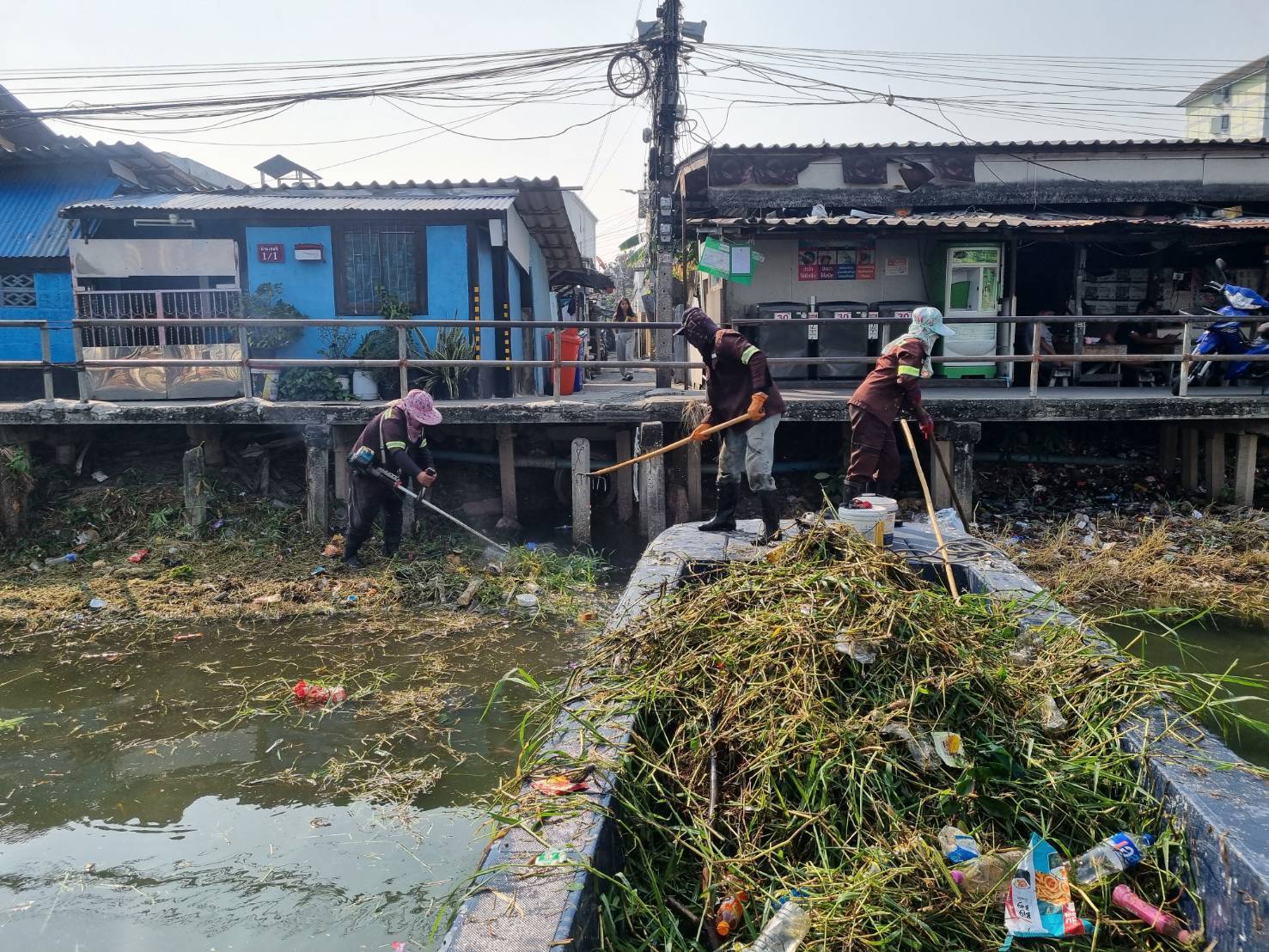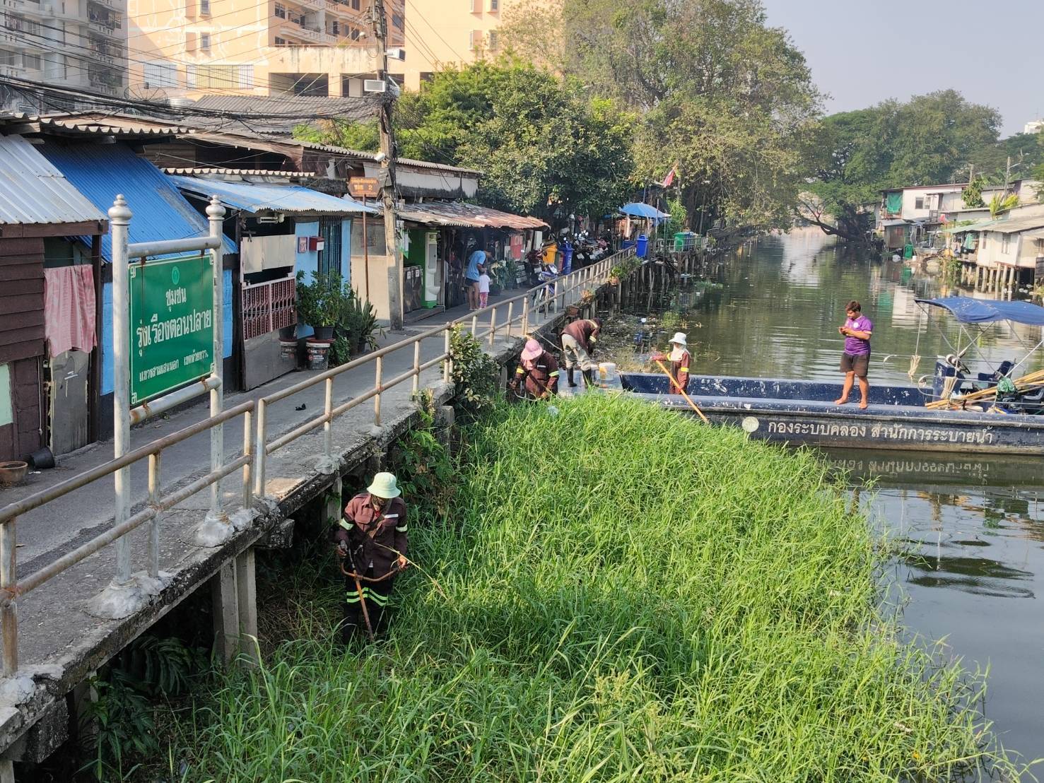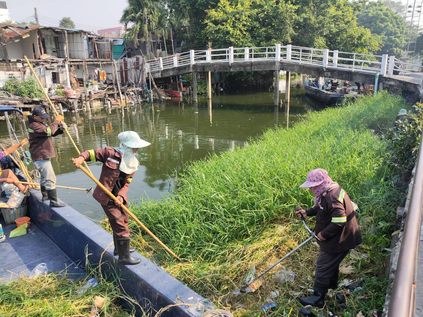 เจ้าหน้าที่ ตัดหญ้าเก็บขยะและวัชพืช คลองบางซื่อ พื้นที่เขตห้วยขวาง