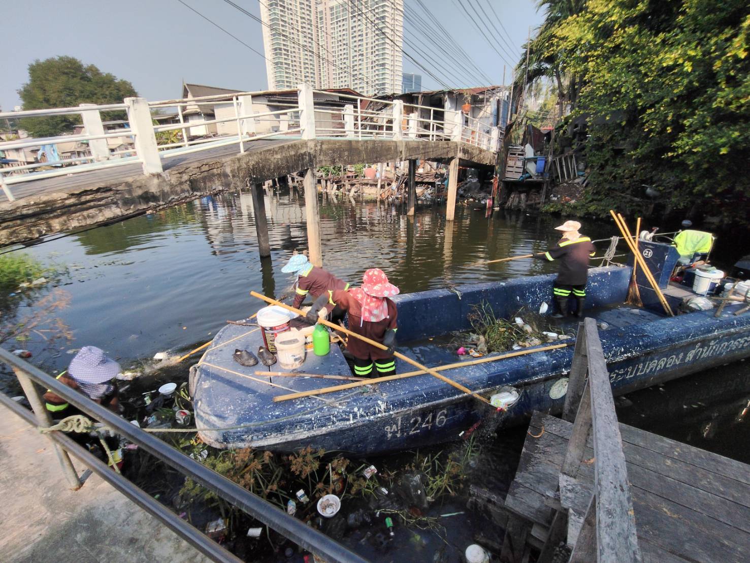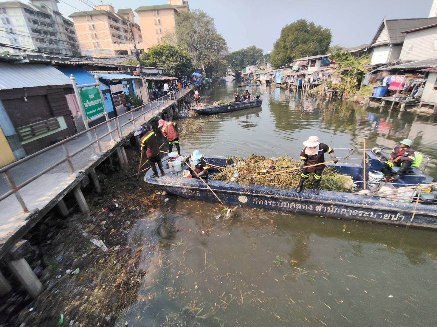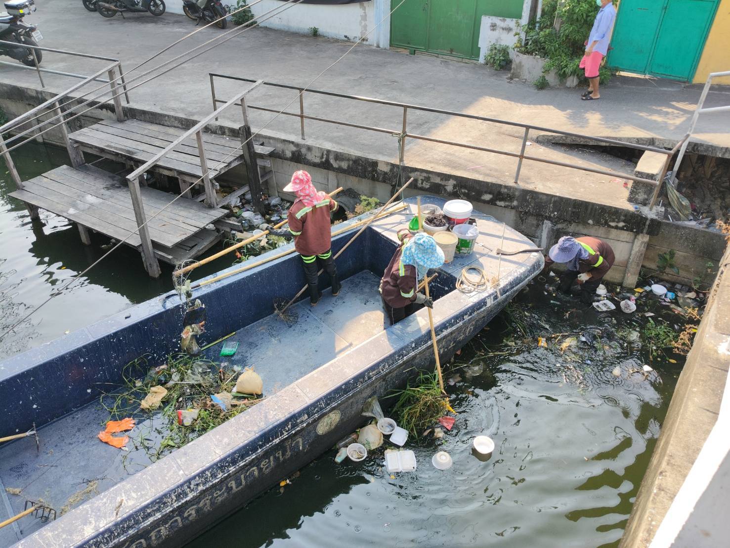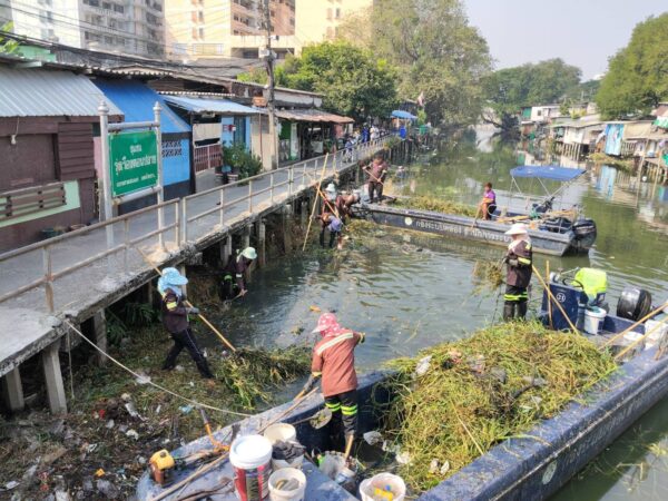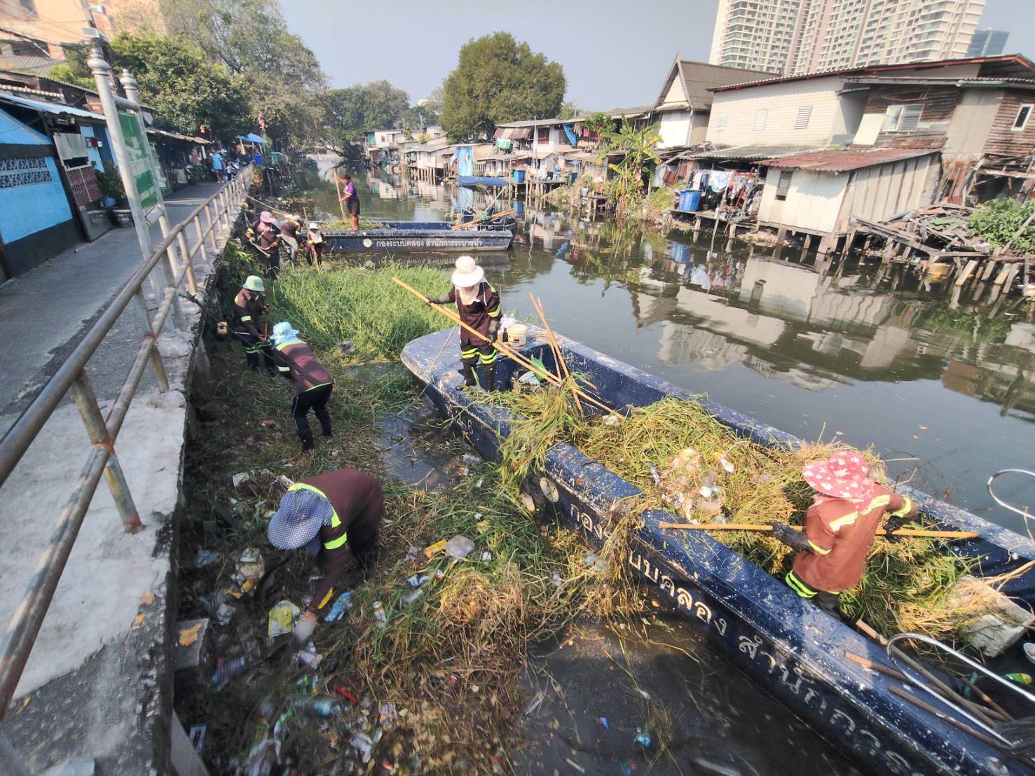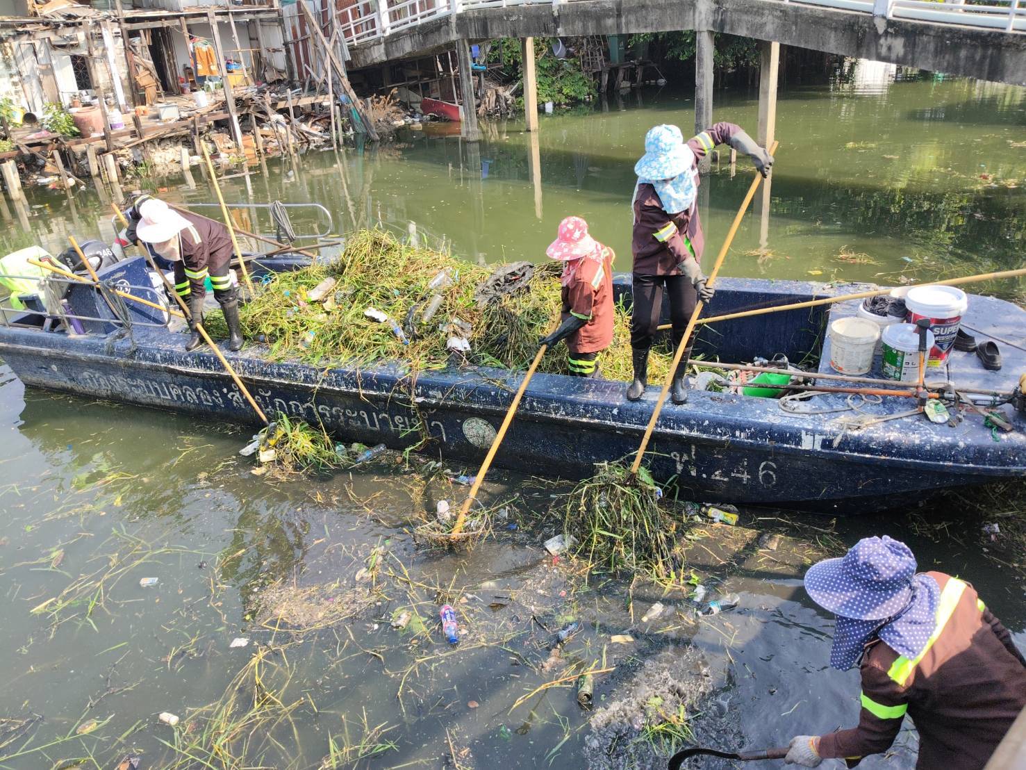 เจ้าหน้าที่ ตัดหญ้าเก็บขยะและวัชพืช คลองบางซื่อ พื้นที่เขตห้วยขวาง