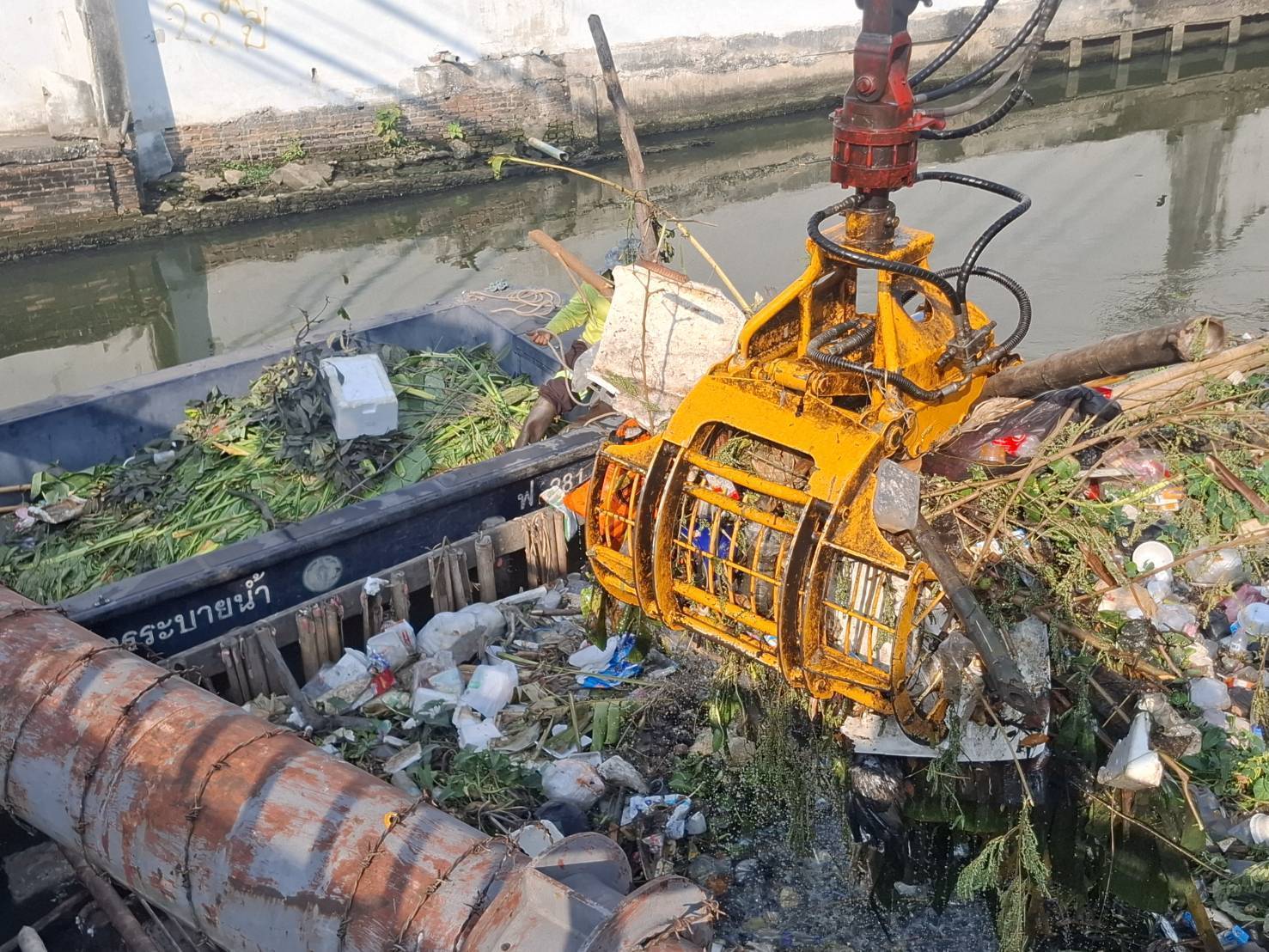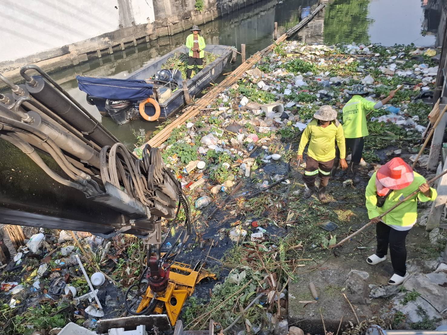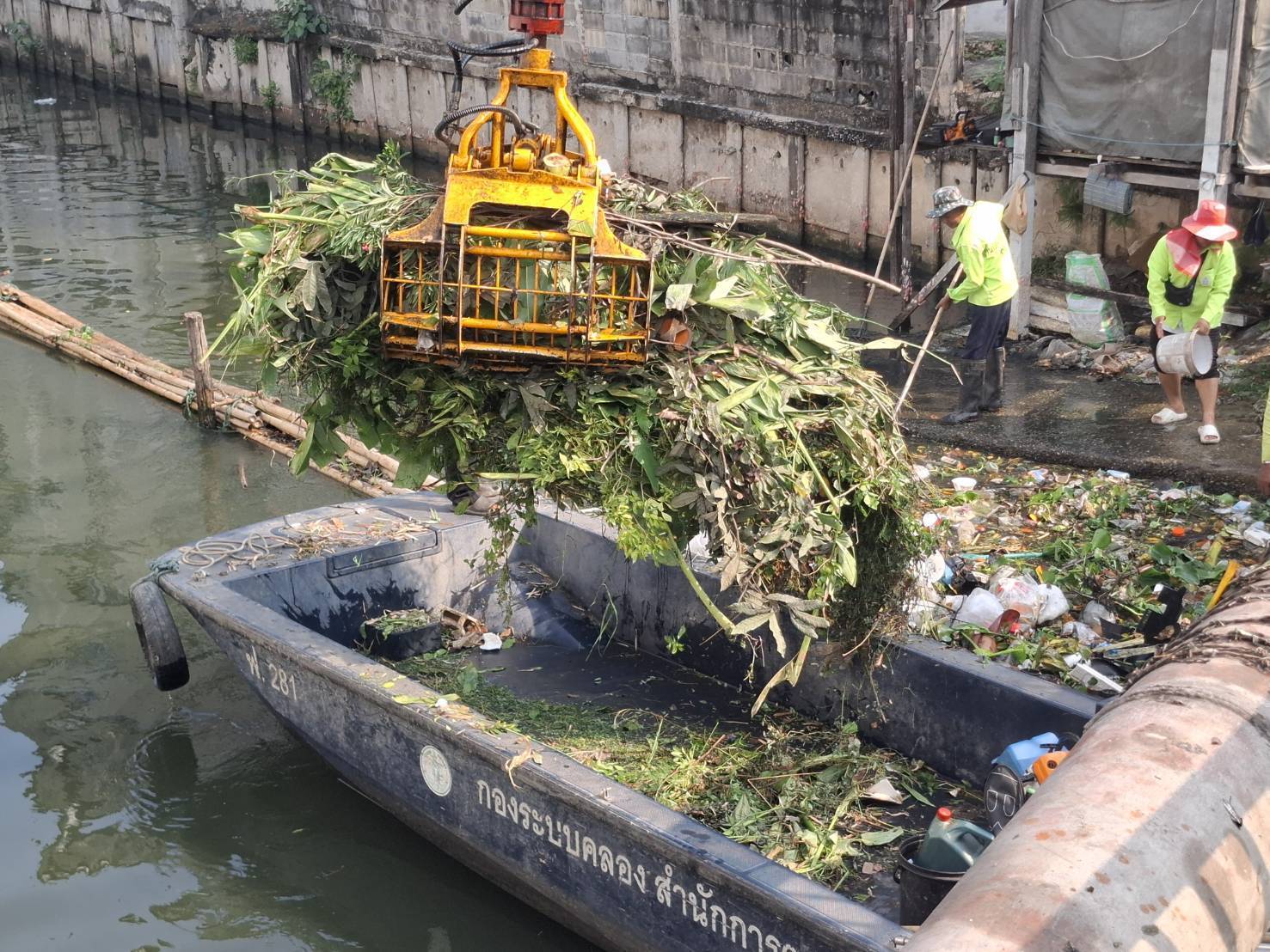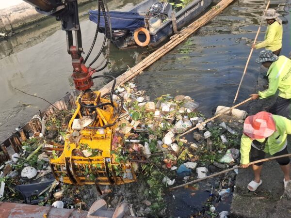 เจ้าหน้าที่ งับขยะวัชพืชคลองพระยาราชมนตรี ถนนเอกชัยบางบอน พื้นที่เขตบางบอน