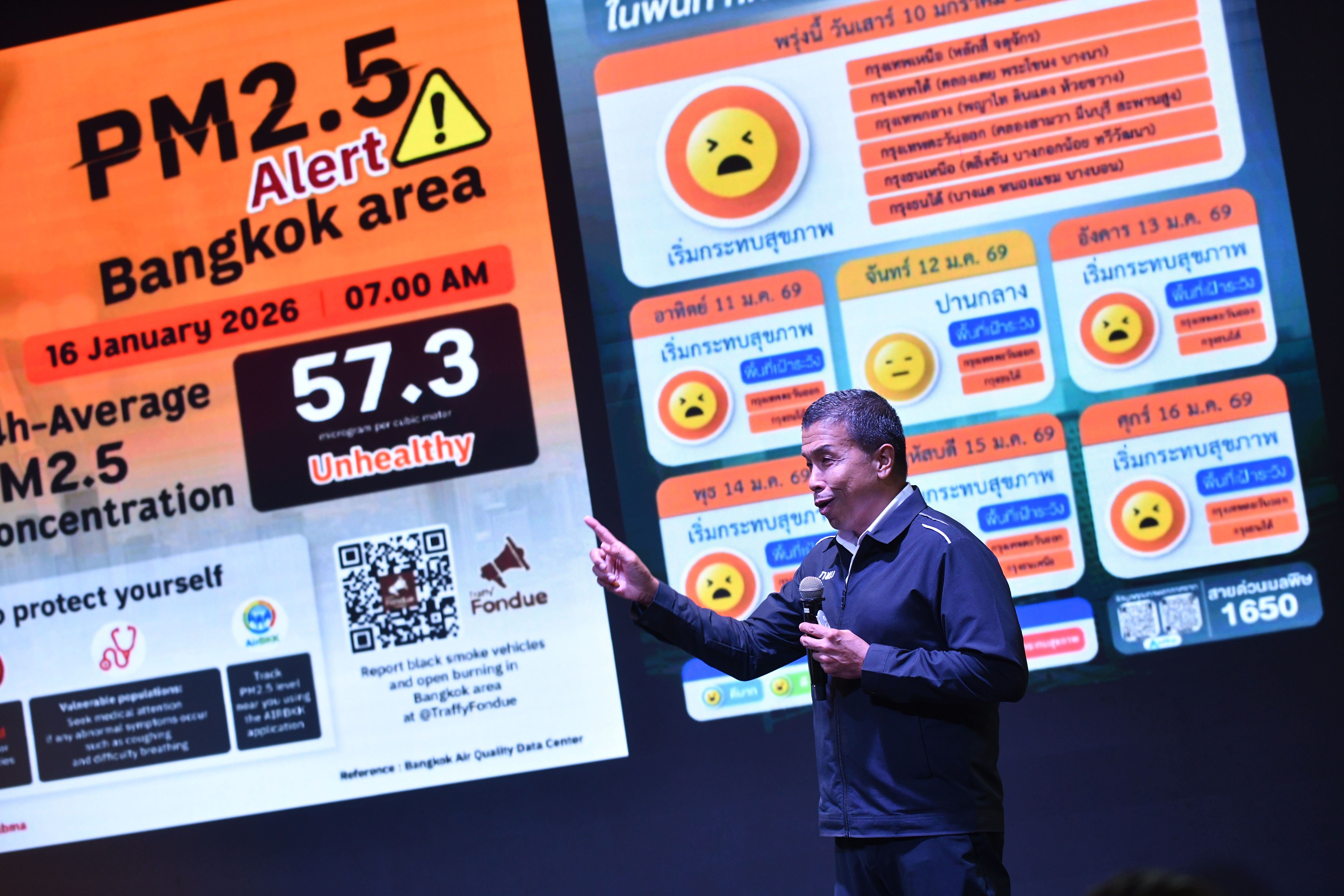 ( 19 ม.ค. 69 ) เวลา 10.00 น. นายชัชชาติ สิทธิพันธุ์ ผู้ว่าราชการกรุงเทพมหานคร ร่วมงานแถลงข่าว และกล่าวปาฐกถาพิเศษ เรื่อง วิสัยทัศน์เมืองอัจฉริยะ เทคโนโลยีเพื่อแก้ไขปัญหา PM2.5 อย่างยั่งยืน โดยผู้ว่าฯ ชัชชาติ ได้กล่าวถึงเทคโนโลยีต่าง ๆ ที่กรุงเทพมหานครใช้ในการบริหารเมือง และการจัดการฝุ่นละอองขนาดเล็กอย่างเป็นระบบ โดยเน้นการตรวจสอบต้นตอ การพยากรณ์ล่วงหน้า และการอำนวยความสะดวกให้ประชาชน อาทิ