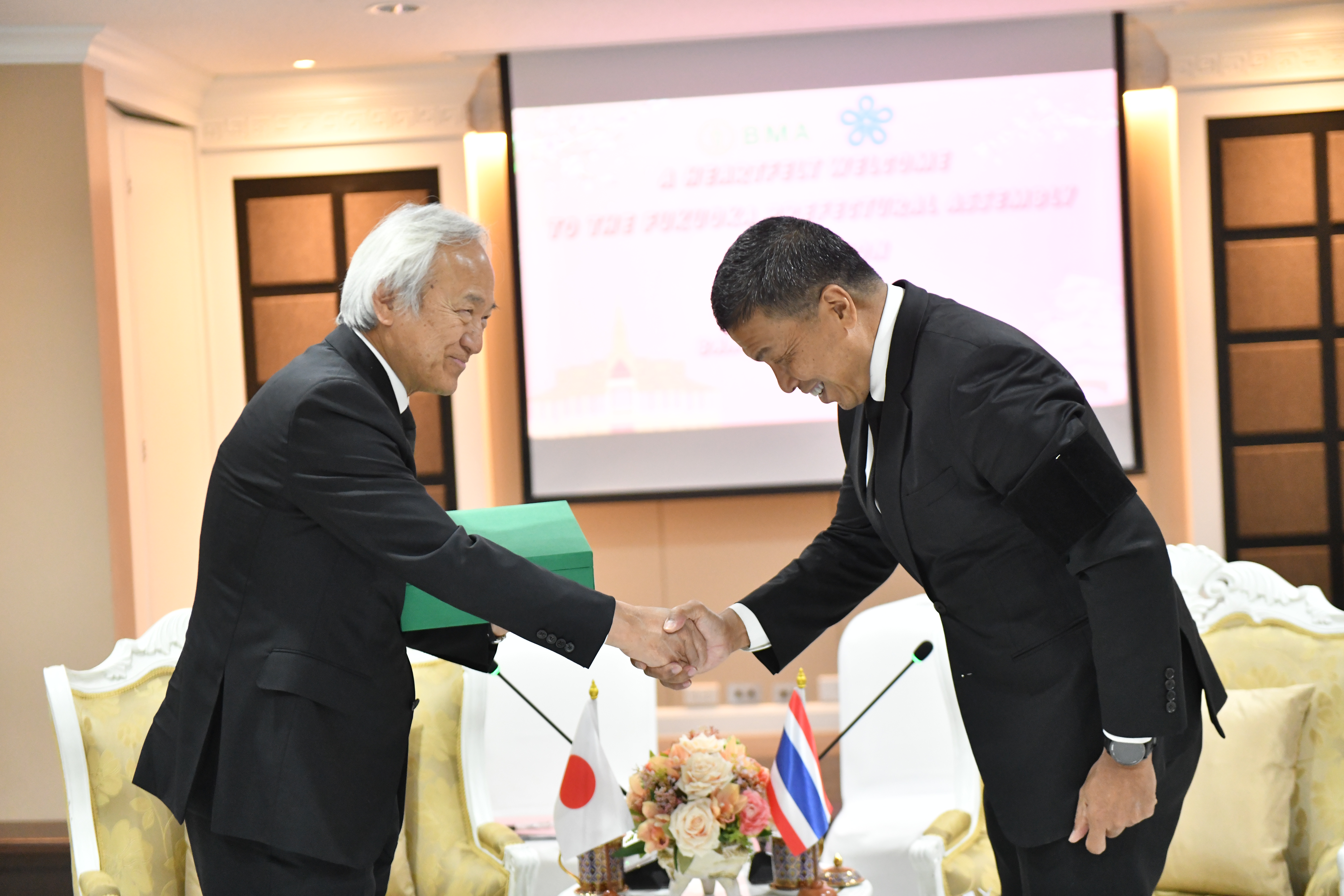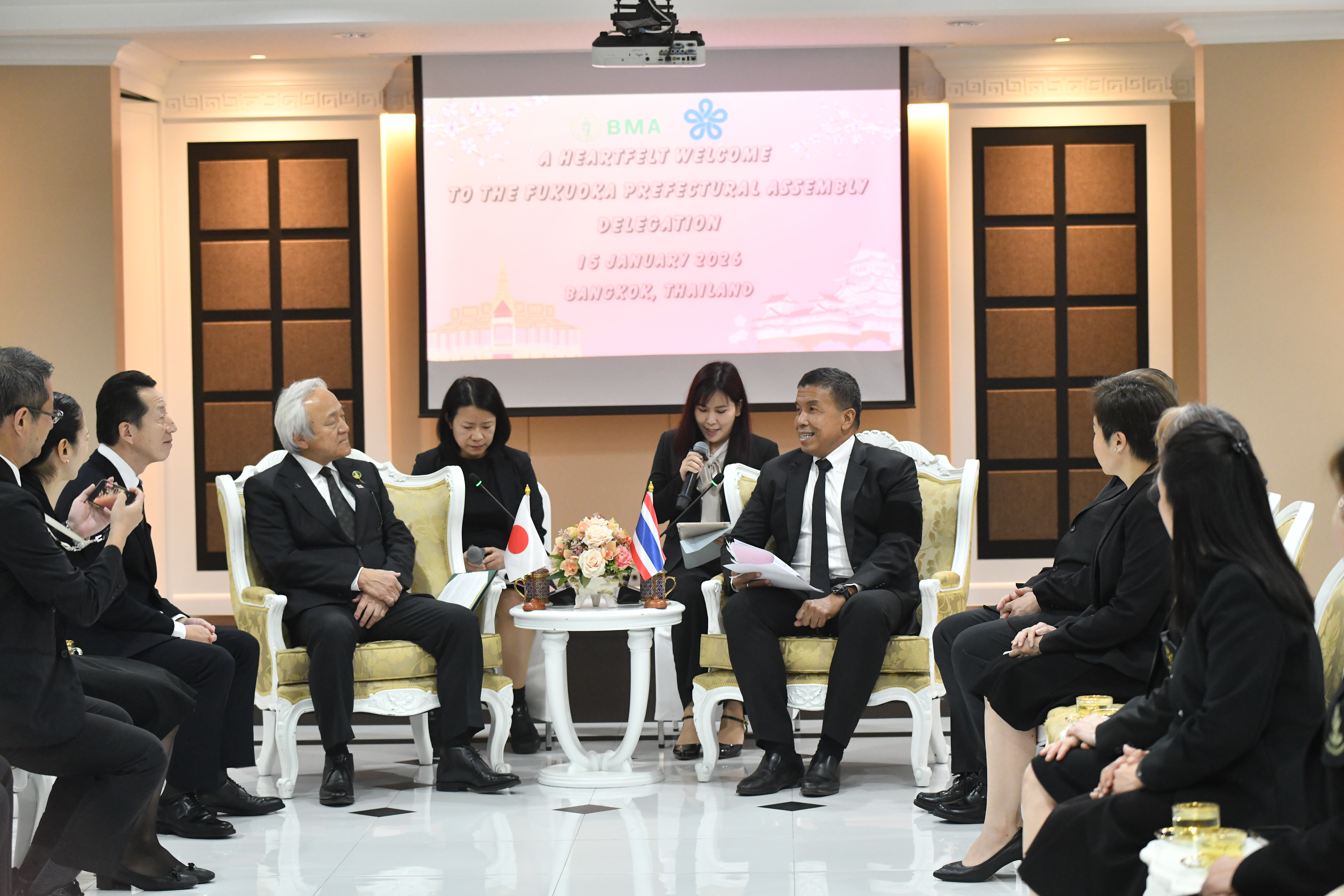 (January 15, 2026) Mr. Chadchart Sittipunt, Governor of Bangkok, welcomed Mr. Isao Kurauchi, Chairperson of the Fukuoka Prefectural Assembly, Japan, along with a delegation consisting of 20 representatives from the Assembly and associated agencies of Fukuoka Prefecture at the Chao Phraya Room, Bangkok City Hall (Sao Chingcha), Phra Nakhon District. During the courtesy call, Governor Chadchart and Mr. Kurauchi addressed the prospects for future cooperation in the field of medicine, education, and the environment between the two cities, including the sharing of knowledge and expertise in veterinary medicine. Japan has maintained a rabies-free status since 1956, attributed to stringent measures and controls regarding pet registration and vaccination, practices from which the BMA aims to draw lessons in addressing its current public health challenges.