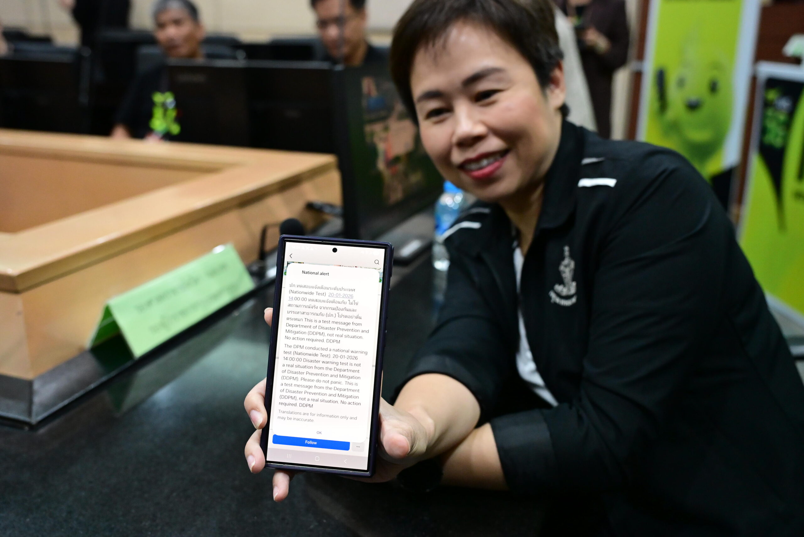 (20 ม.ค. 69) เวลา 14.00 น. รศ.ทวิดา กมลเวชช รองผู้ว่าราชการกรุงเทพมหานคร ร่วมสังเกตการณ์การทดสอบระบบแจ้งเตือนภัยผ่าน Cell Broadcast ระดับประเทศ (Nationwide Test) โดยมีผู้ให้บริการเครือข่ายโทรศัพท์เคลื่อนที่ AIS TRUE และ NT ร่วมทดสอบ ณ ห้องสุทัศน์ ศาลาว่าการกรุงเทพมหานคร เสาชิงช้า เขตพระนคร และผ่านระบบออนไลน์ทั้ง 50 สำนักงานเขต