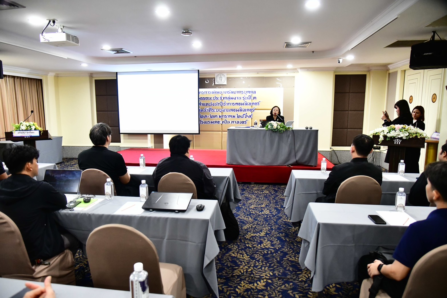 (21 ม.ค.69) เวลา 09.00 น. นางสาวอรัญญา พรไชยะ รองปลัดกรุงเทพมหานคร ประธานพิธีกล่าวต้อนรับการฝึกอบรมหลักสูตรการฝึกอบรมเพื่อพัฒนาทรัพยากรบุคคลตามสมรรถนะประจำกลุ่มงาน ประจำปีงบประมาณ พ.ศ. 2569 สำหรับผู้ดำรงตำแหน่งนักวิชาการคอมพิวเตอร์ และเจ้าหน้าที่ระบบงานคอมพิวเตอร์ โดยมี ผู้บริหารกรุงเทพมหานคร ผู้บริหารสถาบันพัฒนาทรัพยากรบุคคลกรุงเทพมหานคร สำนักงานคณะกรรมการข้าราชการกรุงเทพมหานคร (สำนักงาน ก.ก.) ผู้บริหารสำนักดิจิทัลกรุงเทพมหานคร และผู้ที่เกี่ยวข้อง ร่วมพิธี ณ ห้องจรัสเมือง 1 ชั้น 2 โรงแรม เดอะ ทวิน ทาวเวอร์ เขตปทุมวัน