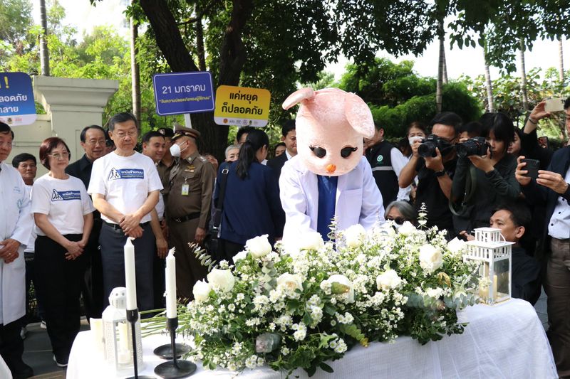 จากนั้น ได้ร่วมกิจกรรมวางดอกไม้ร่วมระลึกถึง แพทย์หญิงวราลัคน์ สุภวัตรจริยากุล (คุณหมอกระต่าย)