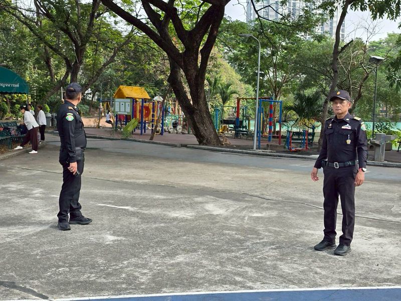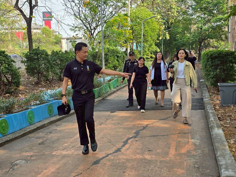 ว.4 ร่วมกับหัวหน้าฝ่ายพัฒนาชุมชนฯ หัวหน้าฝ่ายทะเบียน และเจ้าหน้าที่ฝ่ายสิ่งแวดล้อม ตรวจตราจุดเสี่ยงภัยและดูแลความเป็นระเบียบเรียบร้อย บริเวณสวนเพชรกาญจนารมย์