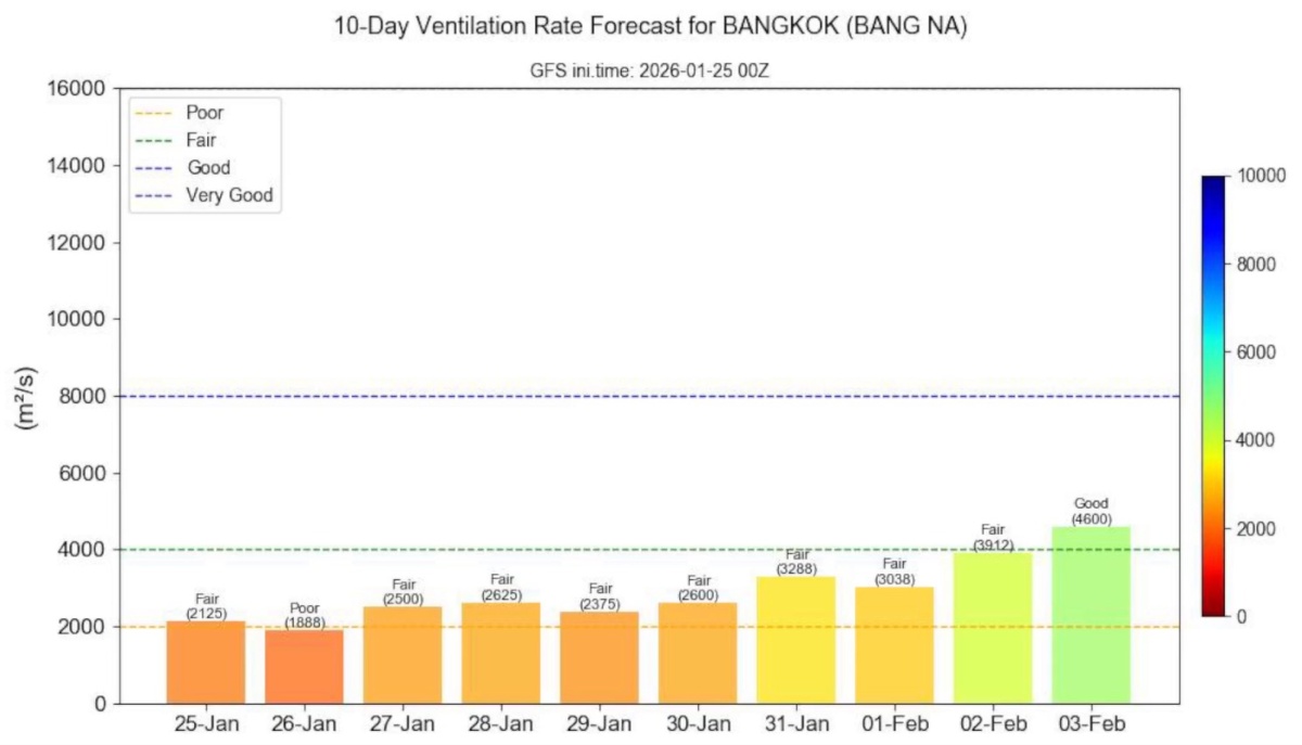 ด้านที่ปรึกษาฯ พรพรหม กล่าวเสริมว่า สัปดาห์นี้คาดการณ์ว่าอัตราการระบายอากาศปิดและปรากฏการณ์ฝาชีครอบ รวมถึงลมจากตะวันออกที่อาจพาฝุ่นจากการเผาชีวมวลเข้ามา ทำให้ค่าฝุ่นยังไม่ลดลง