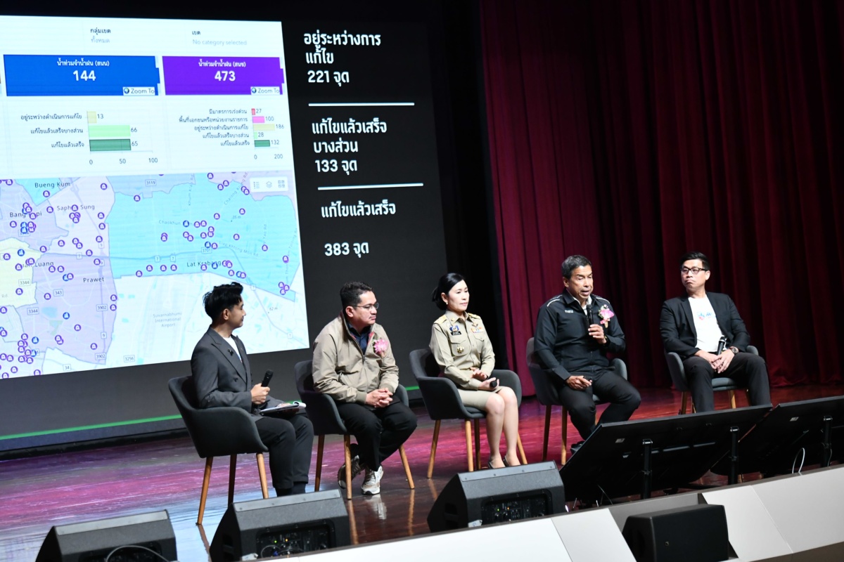 ในการเสวนา ผู้ว่าฯ ชัชชาติ ได้กล่าวถึงแนวทางรับมือสถานการณ์น้ำท่วมกรุงเทพฯ ที่ต้องเริ่มจากความเข้าใจปัจจัยเสี่ยงอย่างรอบด้าน โดยระบุว่า น้ำท่วมในกรุงเทพฯ เกิดจากน้ำ 3 แหล่งหลัก ได้แก่ น้ำฝน น้ำเหนือหลาก และน้ำทะเลหนุน