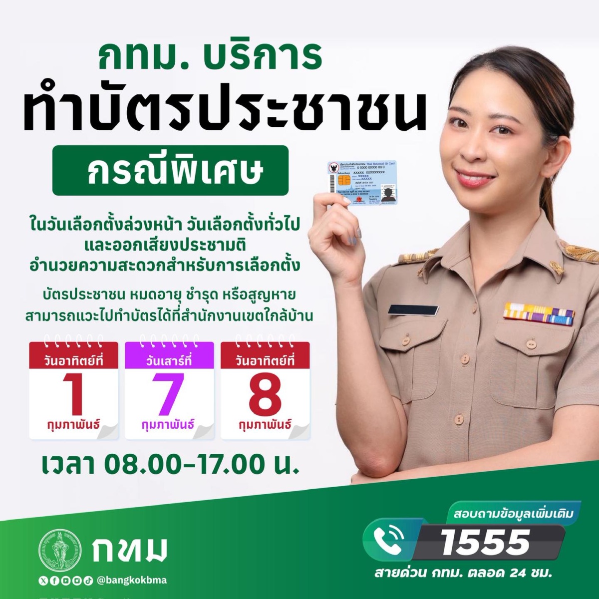 นอกจากนี้ กทม. ได้เปิดให้บริการจัดทำบัตรประจำตัวประชาชนกรณีพิเศษเพื่อสนับสนุนการลงคะแนนเลือกตั้ง ที่สำนักงานเขตทั้ง 50 แห่ง โดยเปิดให้บริการในวันที่ 1 กุมภาพันธ์ และวันที่ 7–8 กุมภาพันธ์ 2569 ระหว่างเวลา 08.00–17.00 น.