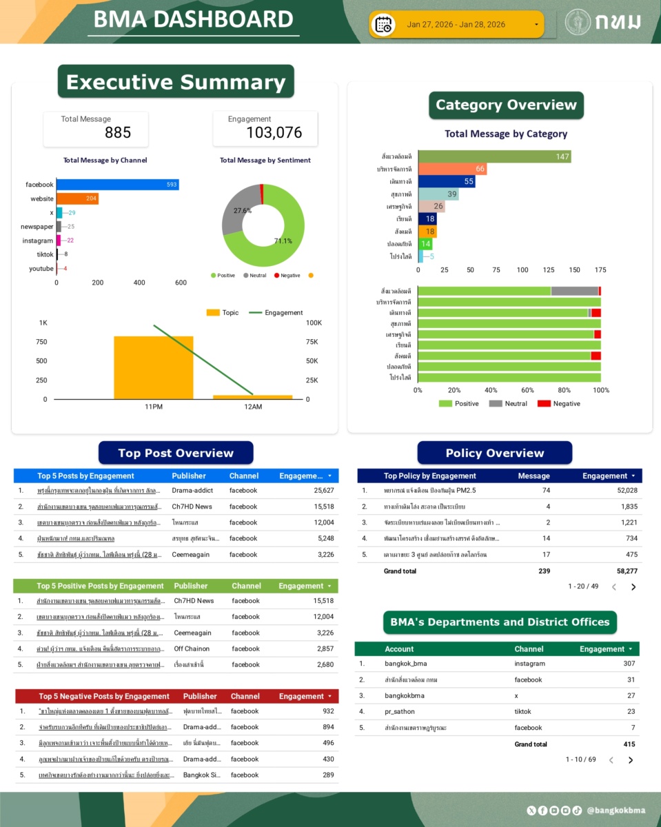 ภาพรวมการกล่าวถึงกรุงเทพมหานครในสื่อออนไลน์ วันที่ 28 ม.ค. 69